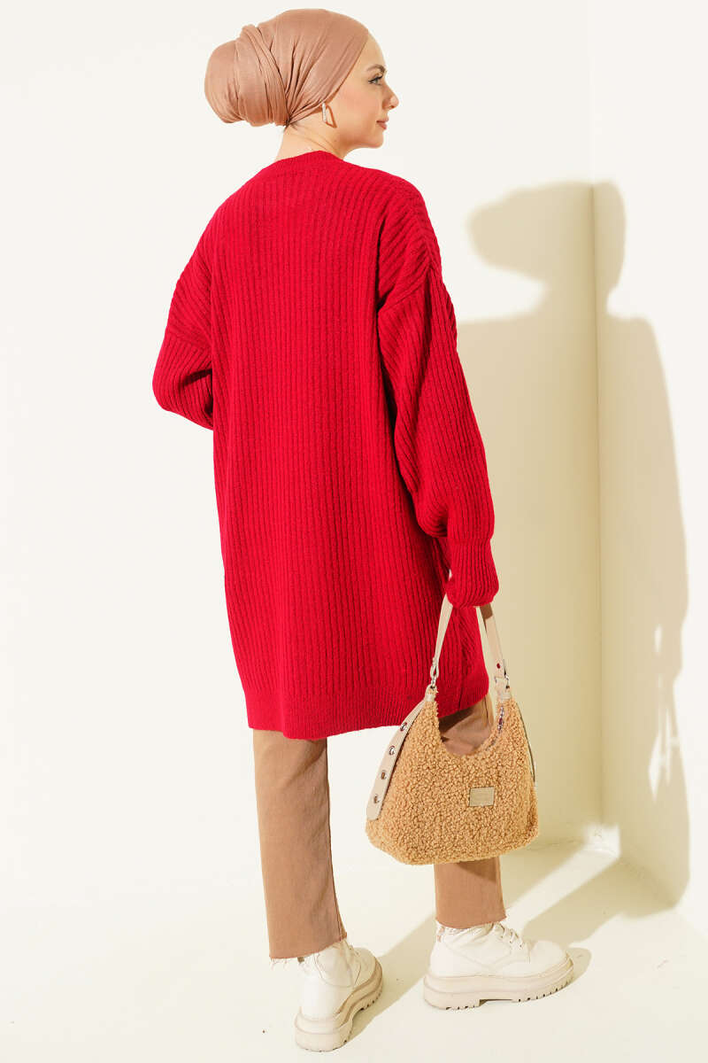Asimetrik Kabartma Çizgili Triko Tunik Bordo