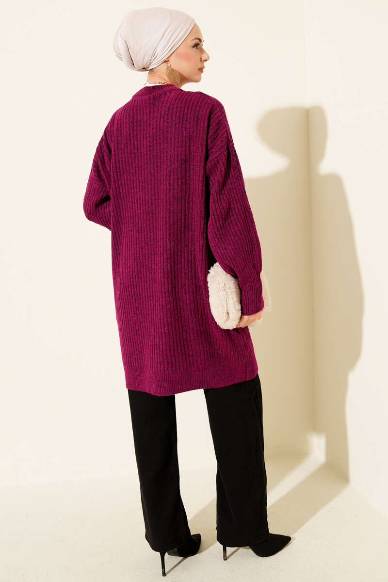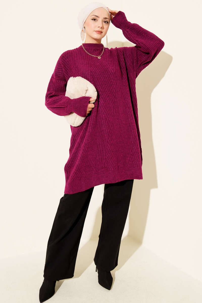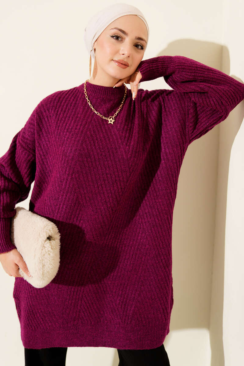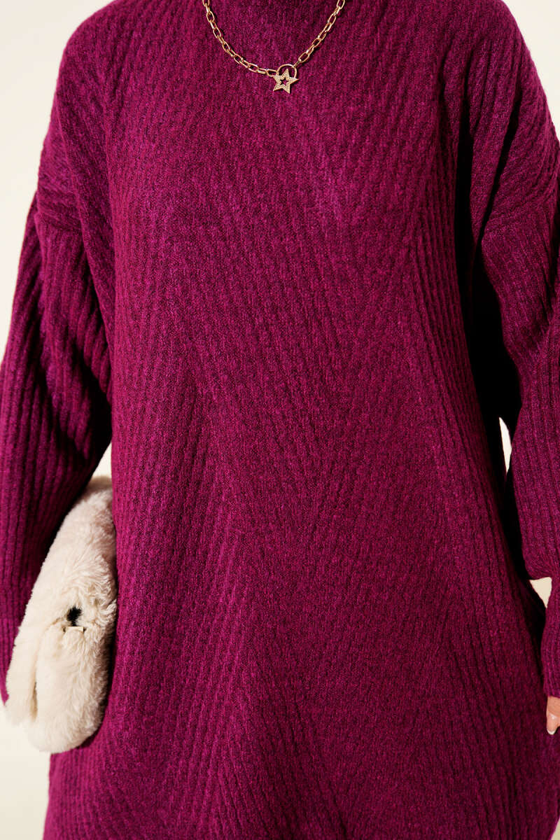 Ribana Görünümlü Triko Tunik Mor