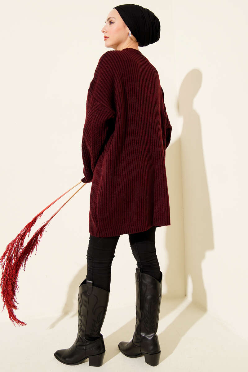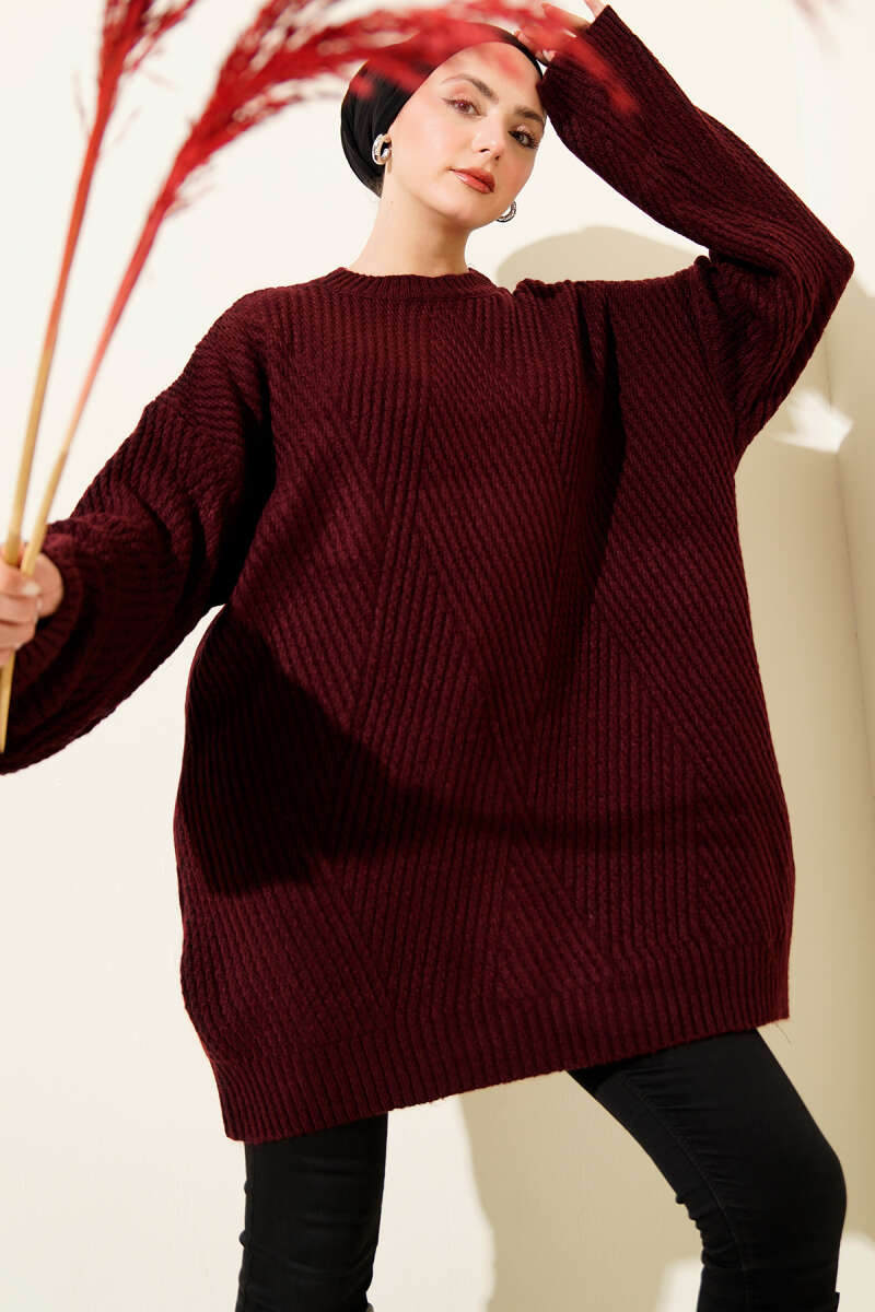 Geniş Fitilli Triko Yumoş Tunik Gri