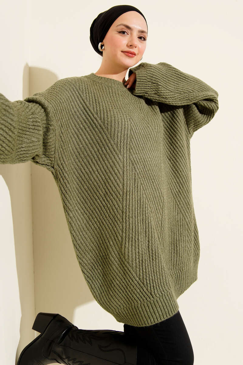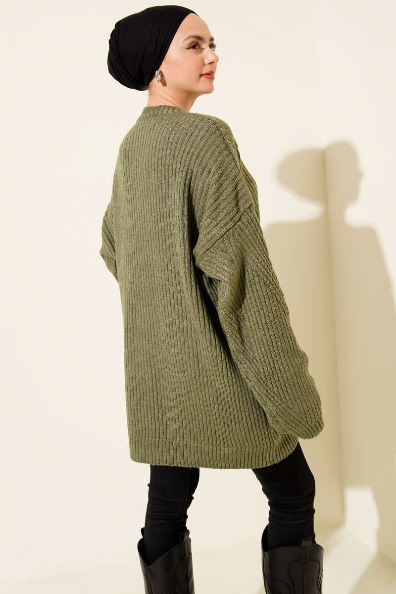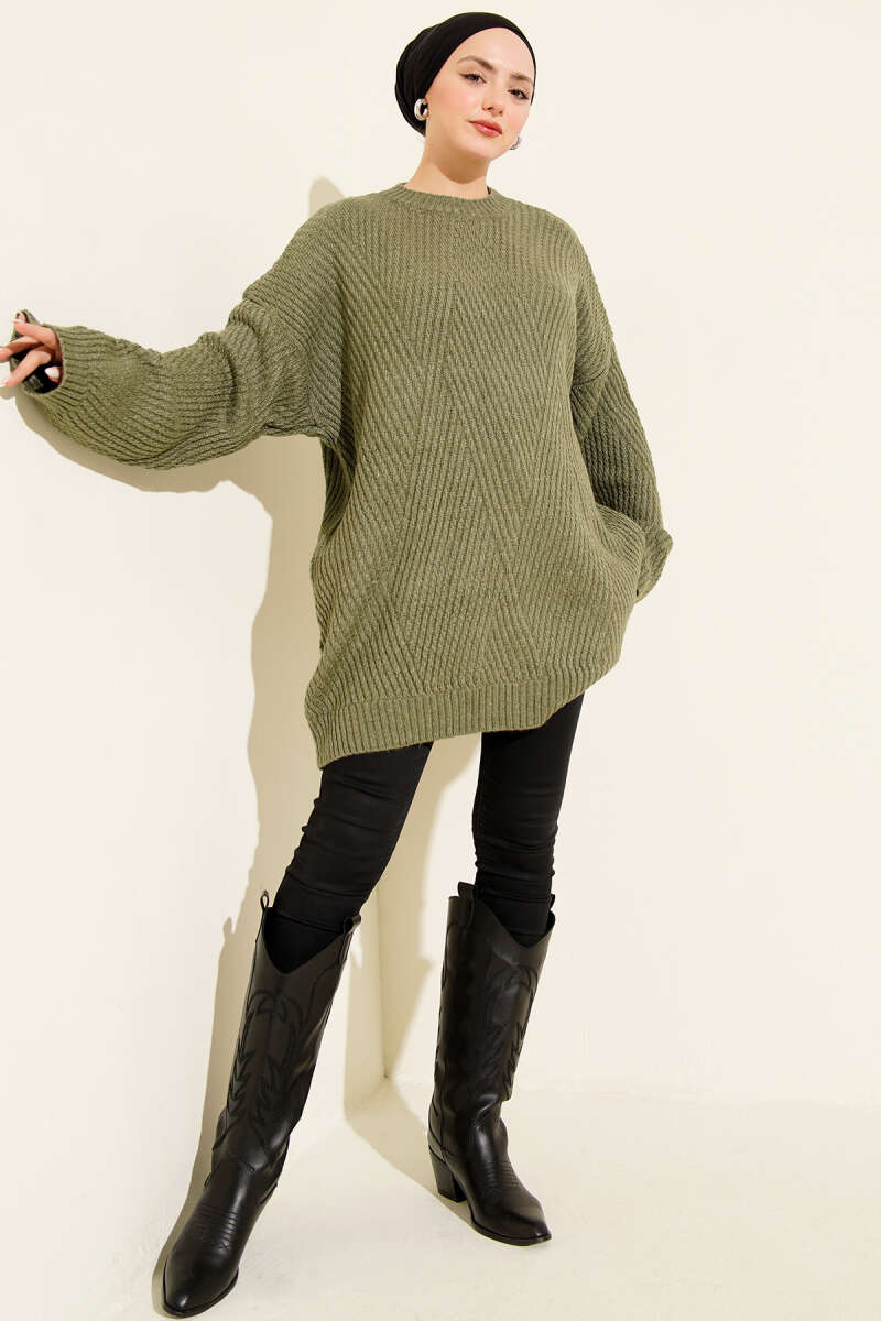 Oversize Düşük Omuz Triko Tunik Çağla Yeşili