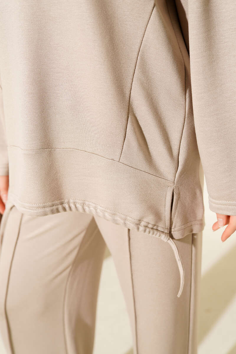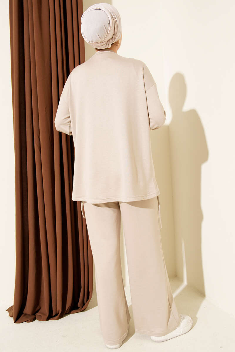 Asimetrik Kesim Bisiklet Yaka İkili Takım Ekru