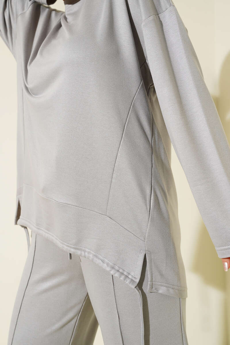 Balance Armalı Kapüşonlu Salaş İkili Takım Melanj Gri