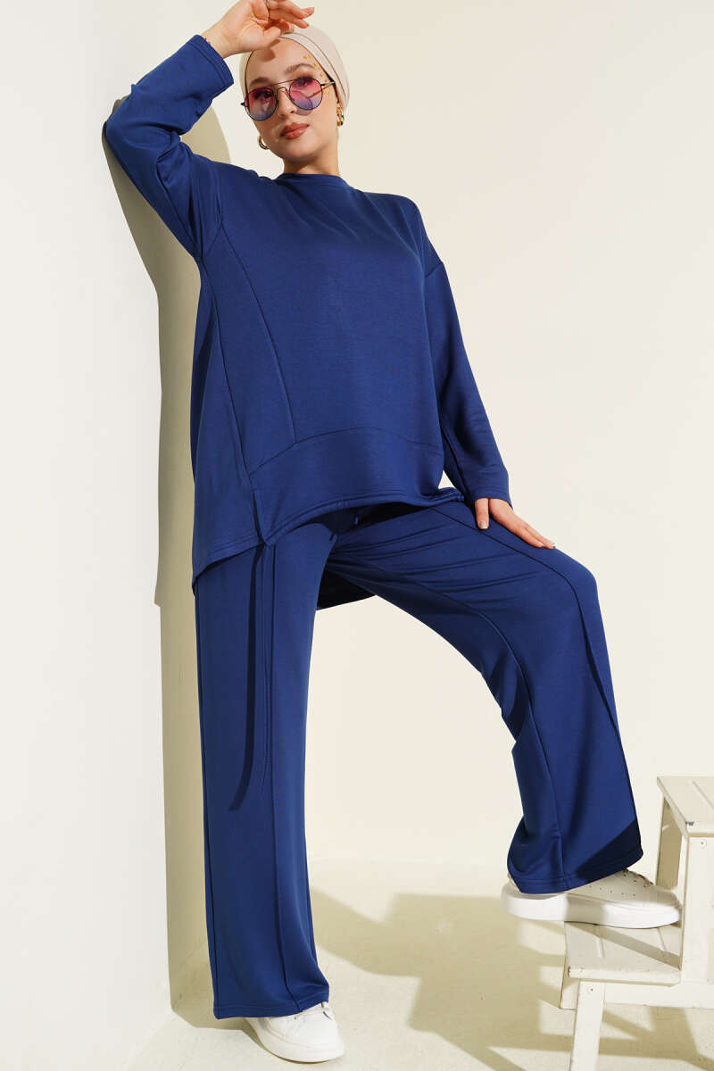 Asimetrik Kesim Bisiklet Yaka İkili Takım Mavi