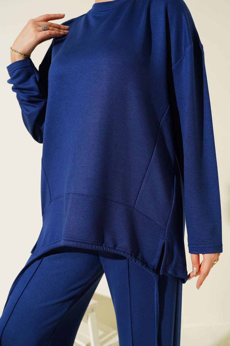 Yaka Kürklü Fermuarlı Triko İkili Takım Lacivert