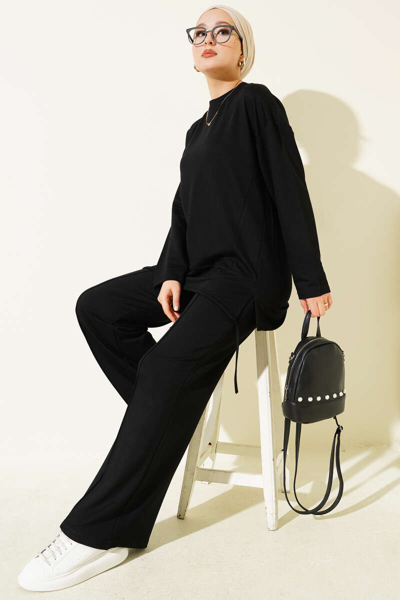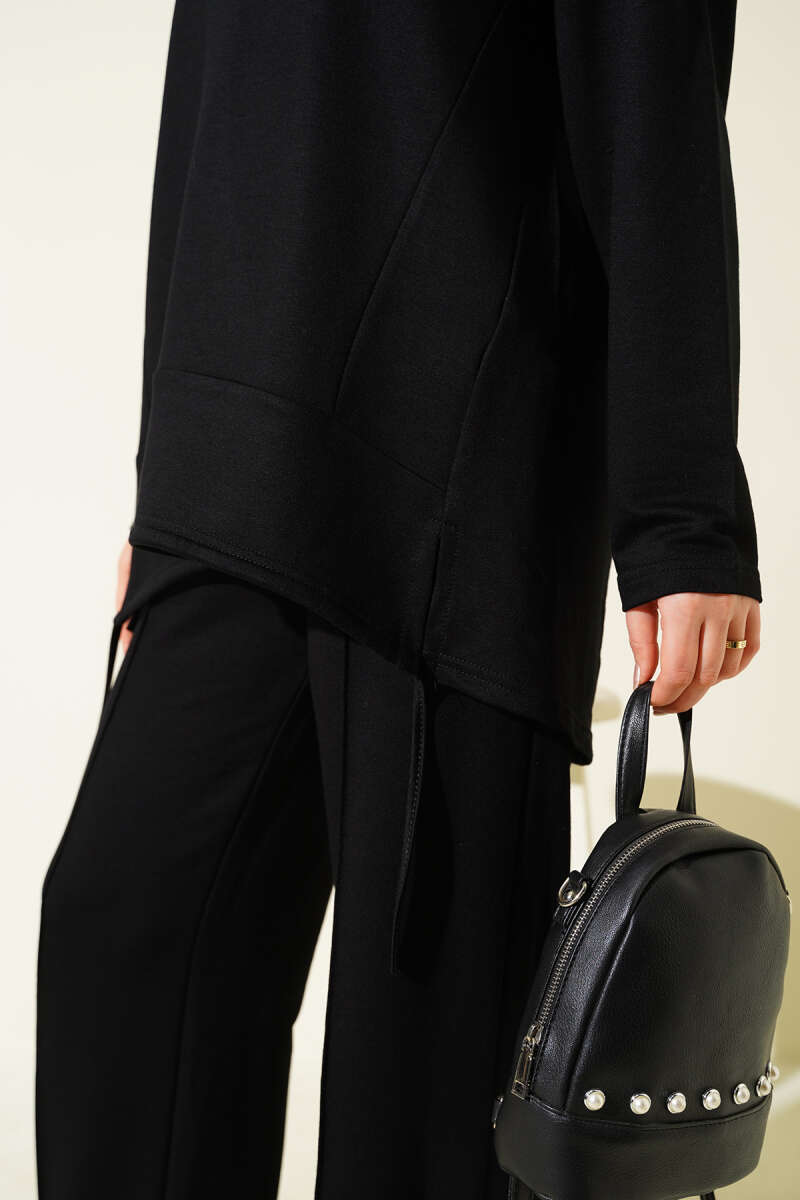 Asimetrik Kesim Bisiklet Yaka İkili Takım Siyah