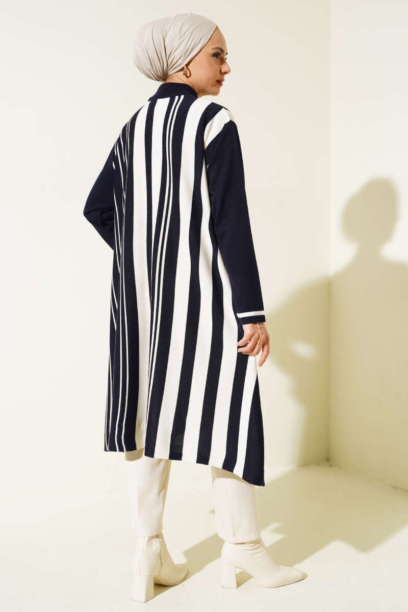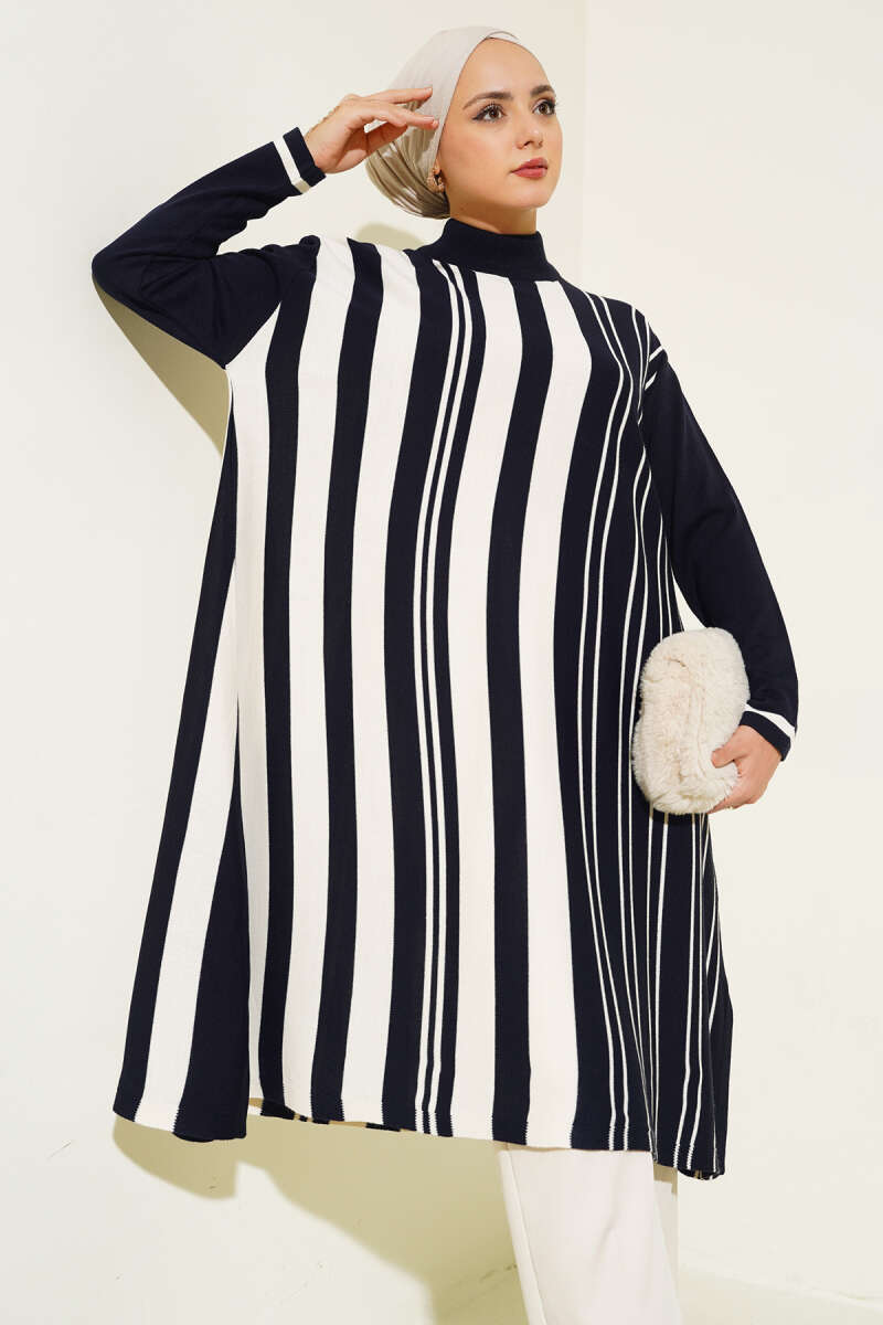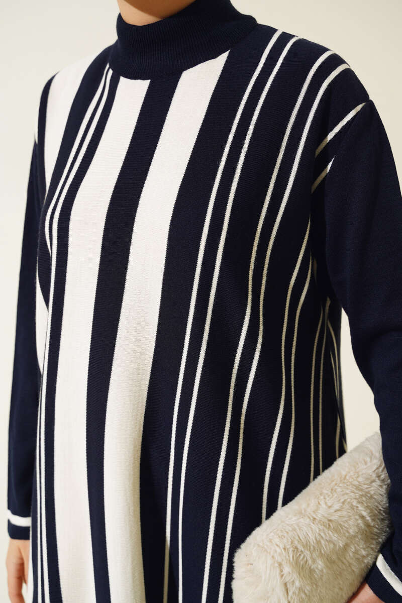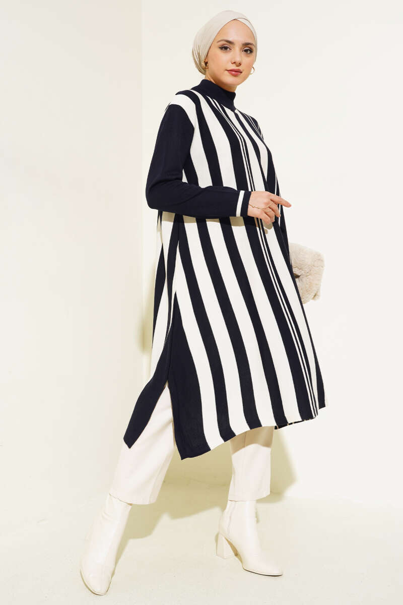 Çizgi Baklava Desen Triko Tunik Lacivert