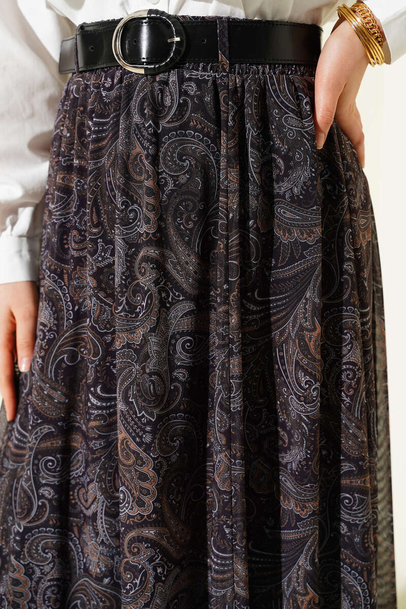 Bel Lastikli Dantelli Kloş Etek Kahve
