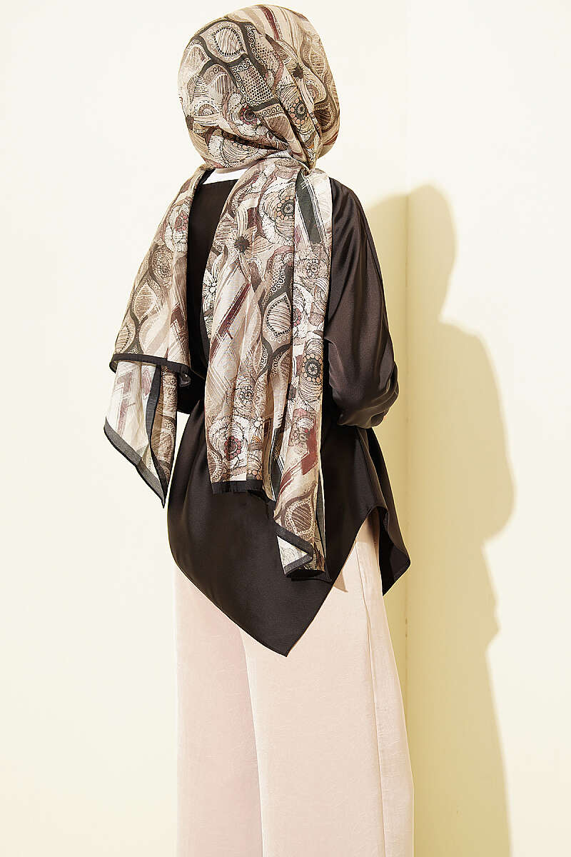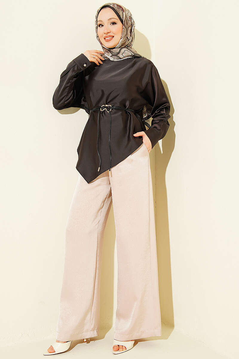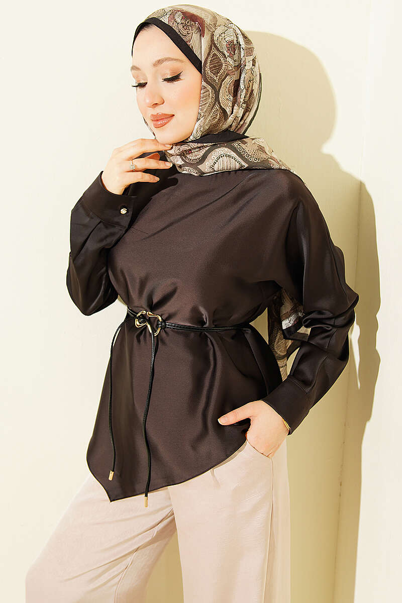 Asimetrik Kesim Saten Tunik Acı Kahve