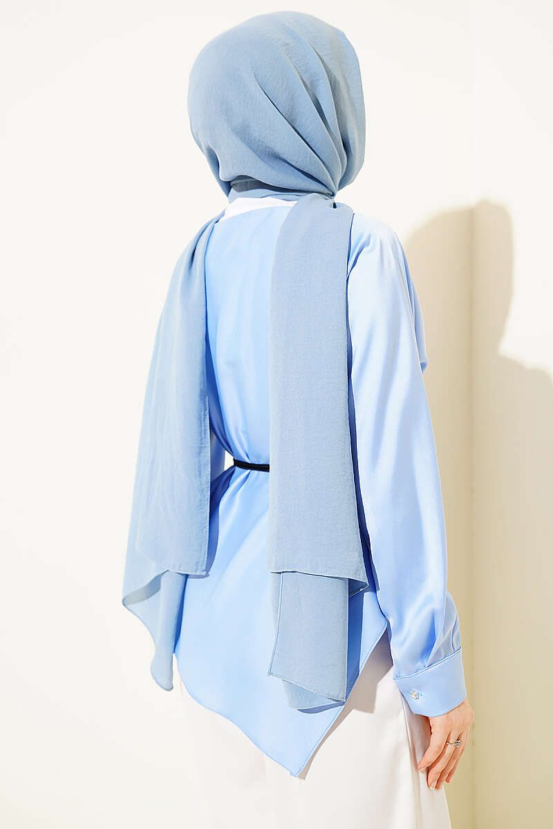 Asimetrik Kesim Saten Tunik Bebe Mavi