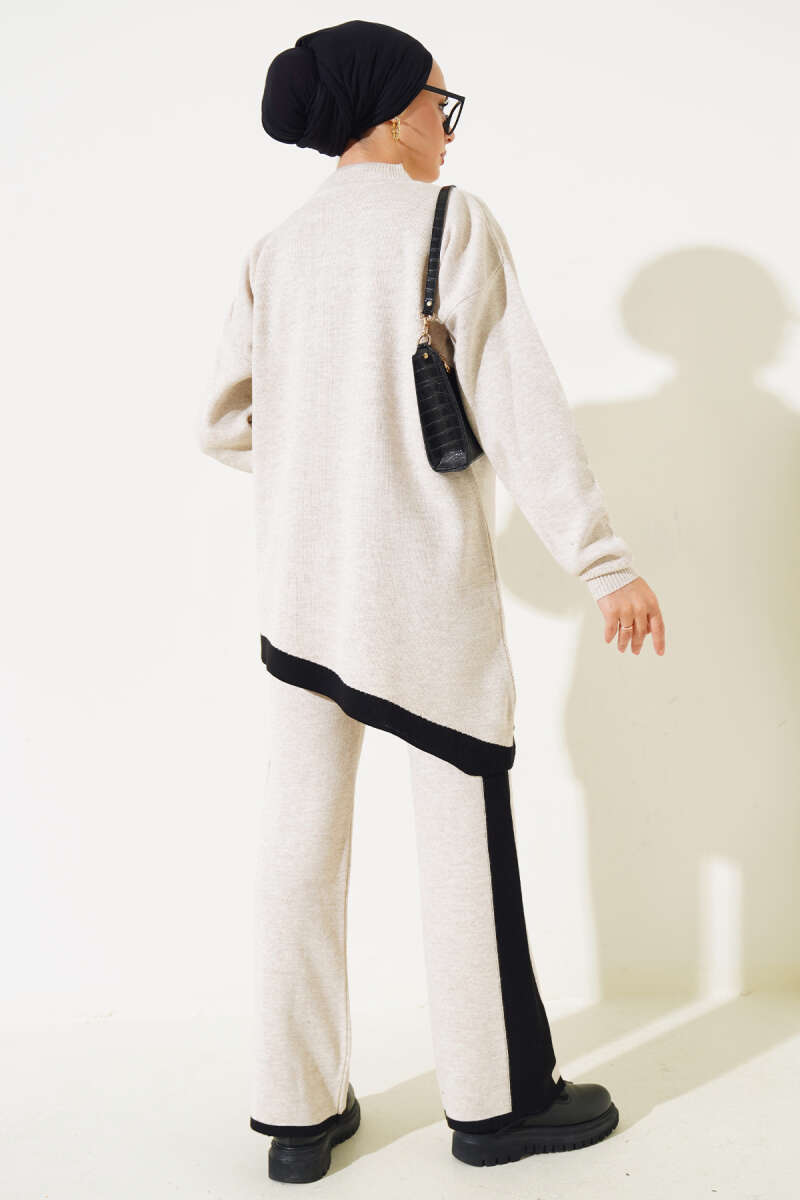 Taşlı Baklava Desen Triko İkili Takım Ekru