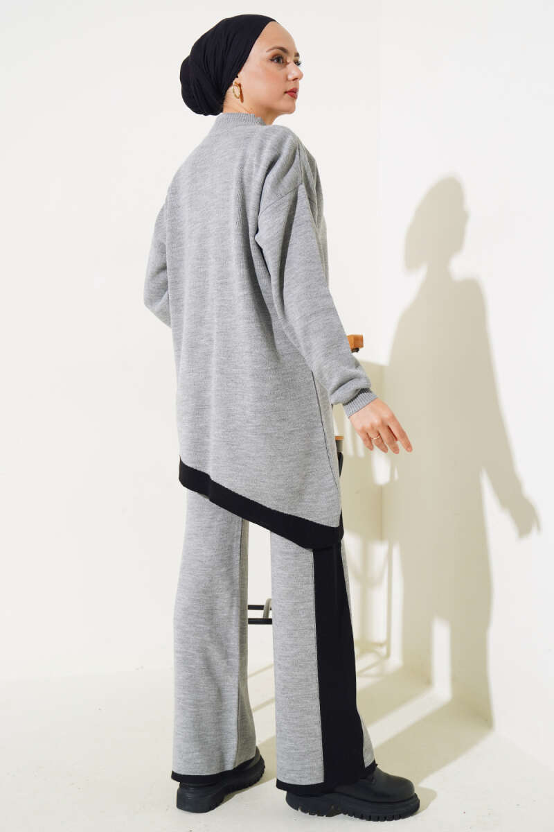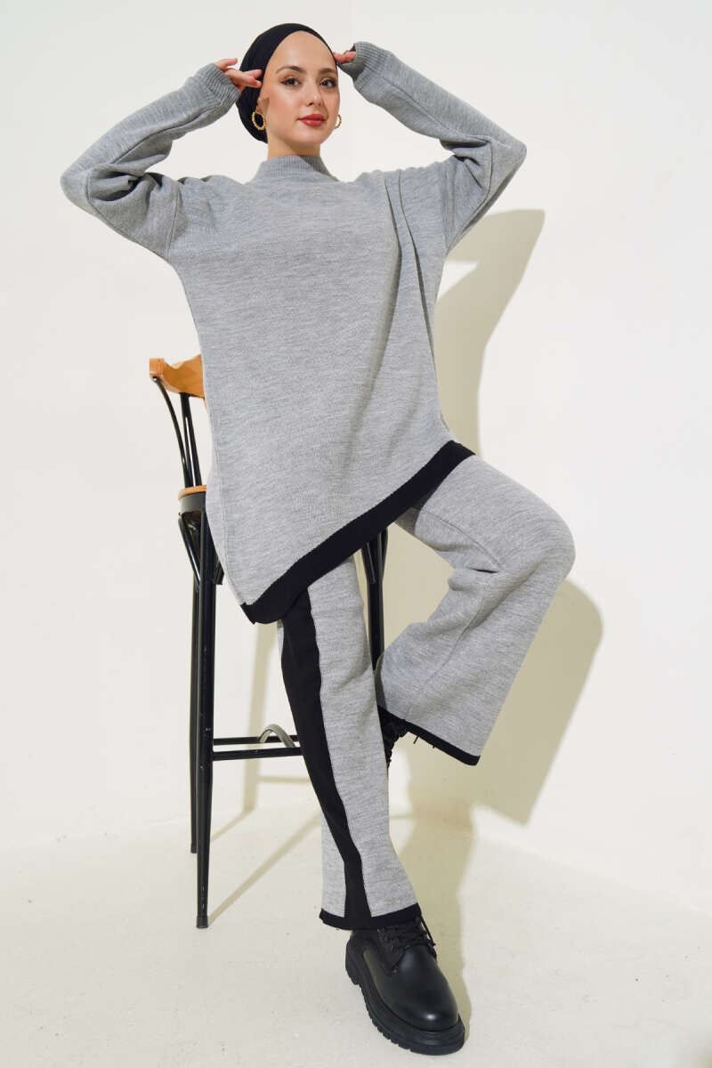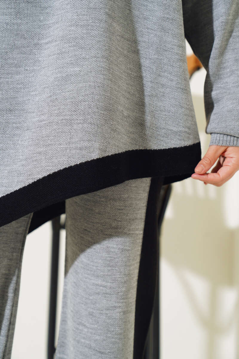 Balon Kol Balıkçı Yaka Triko İkili Takım Gri