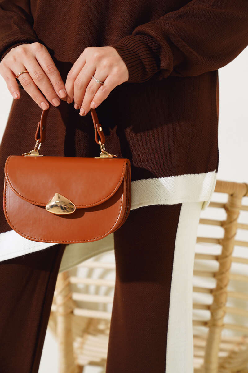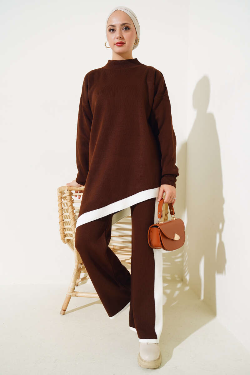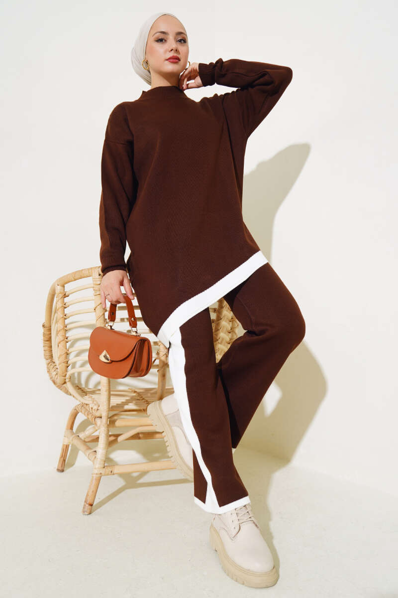 Balıkçı Yaka Fitilli Triko İkili Takım Kahve
