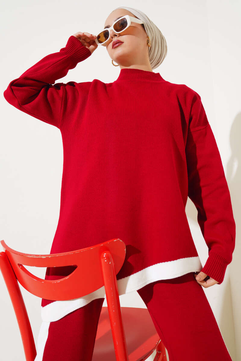 Çizgili Bolerolu Triko İkili Takım Bordo