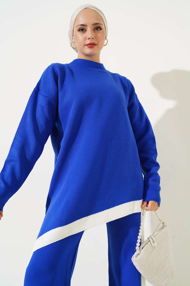 Balon Kol Balıkçı Yaka Triko İkili Takım Lacivert