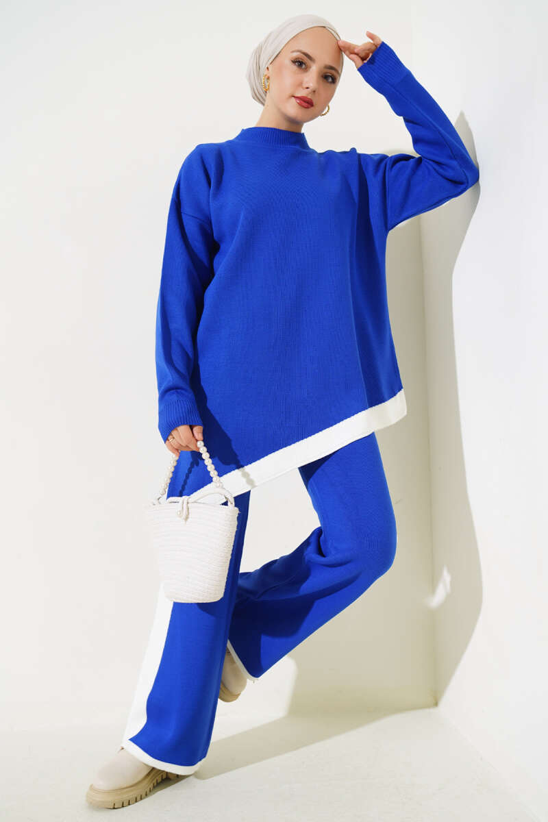 Kabartma Şeritli Taşlı Triko İkili Takım Nefti