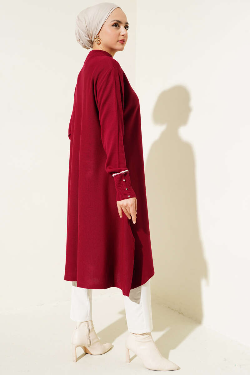 Önü Düğmeli Ayrobin Bordo Uzun Hırka