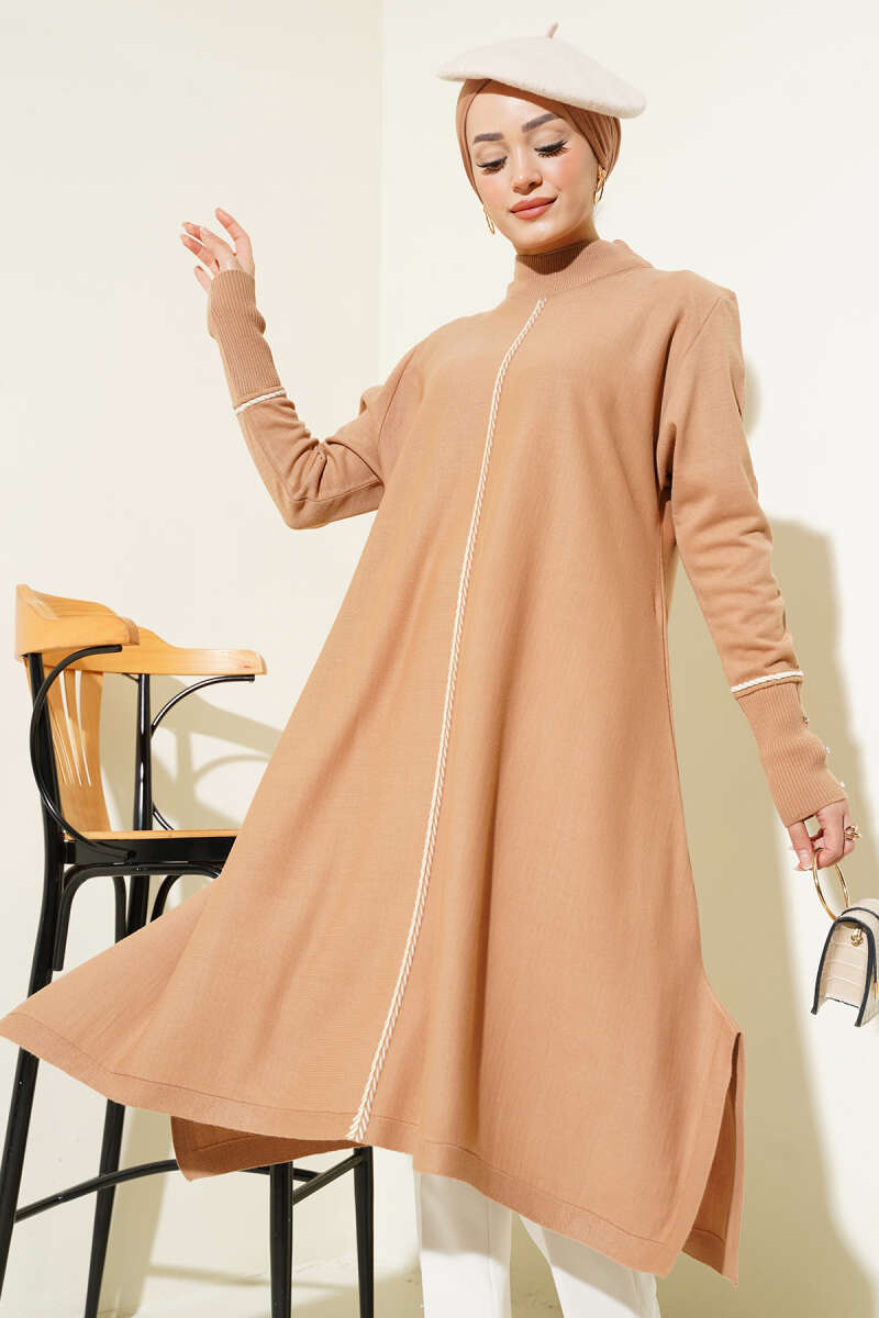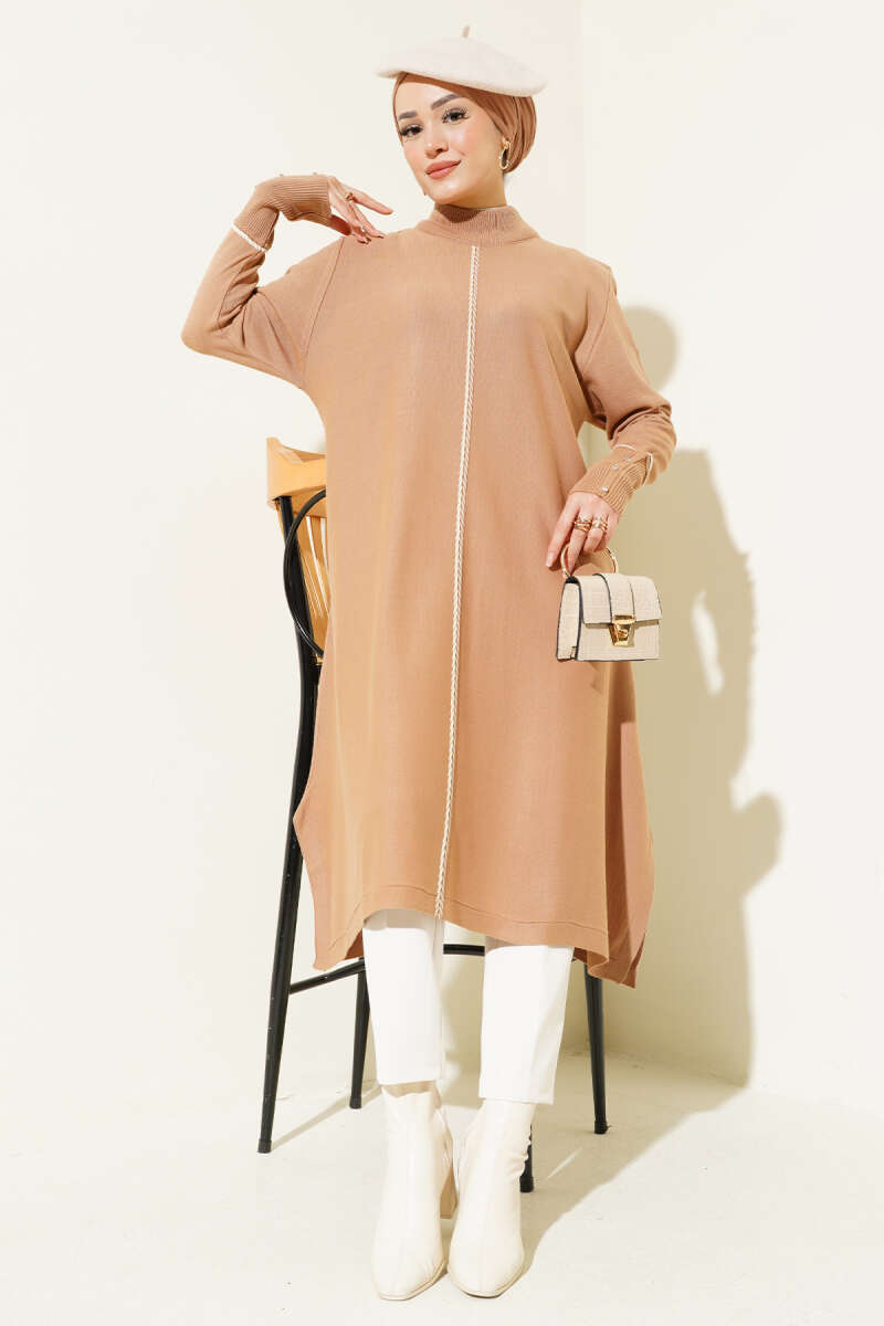 Kabartma Desen Yumoş Triko Tunik Kemik