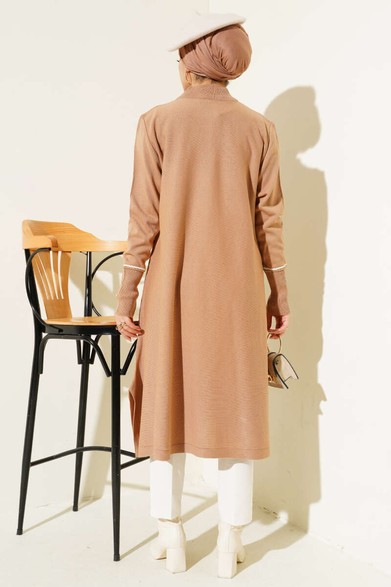 Yaka Fularlı Yumoş Triko Tunik Kahve
