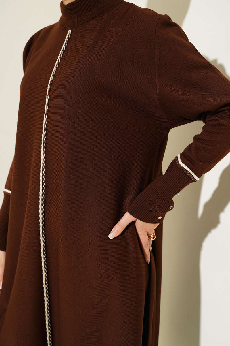 Kuşaklı Dik Fitilli Kaşe Elbise Kahve