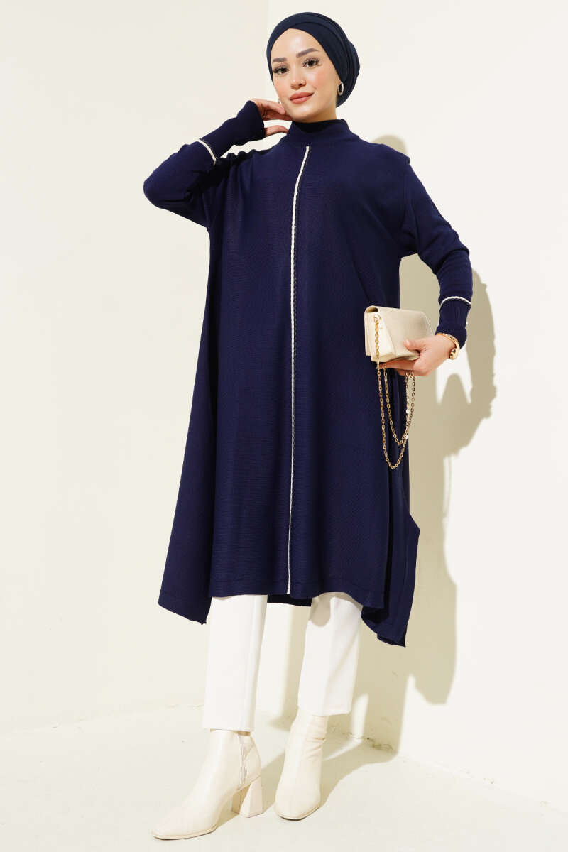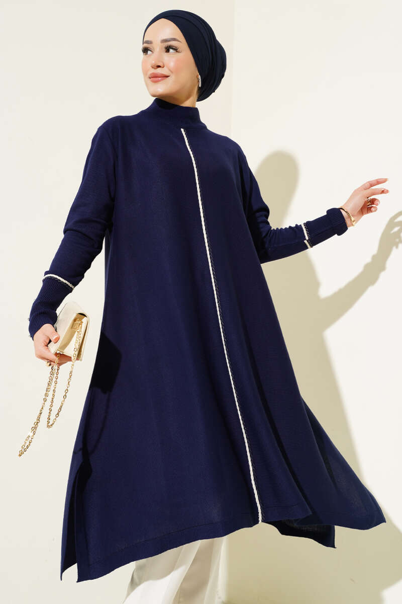 Yarım Fermuarlı Mevlana Elbise Lacivert