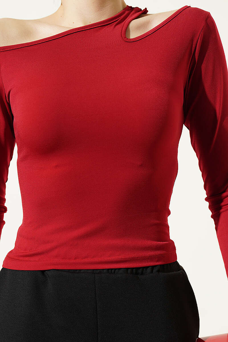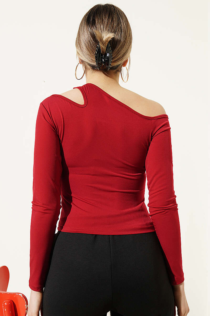 Asimetrik Omuz Detaylı Bluz Kırmızı