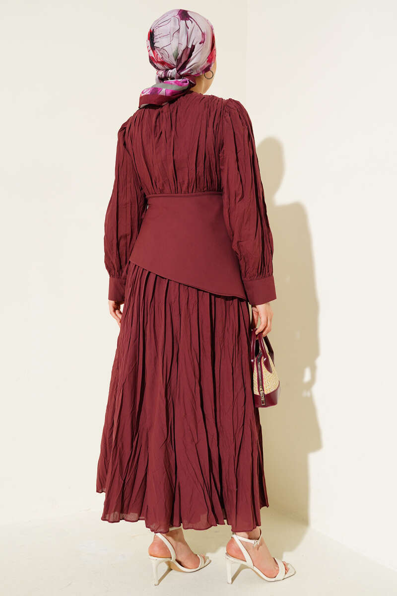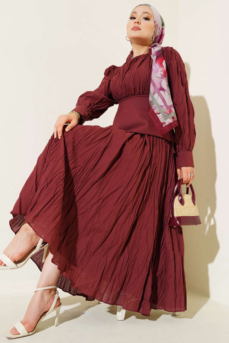 Şerit Ajur Desen Triko Elbise Gül Kurusu