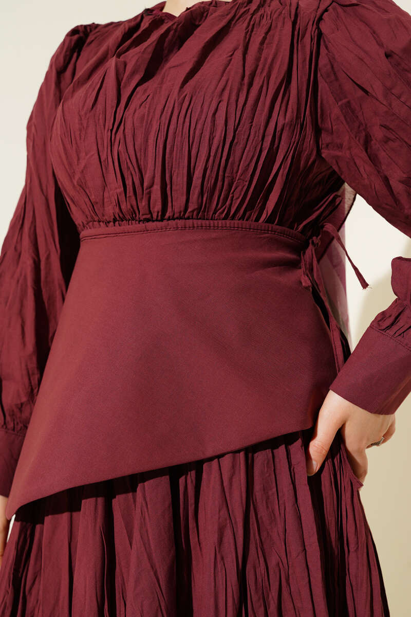 Kapüşonlu Yarım Fermuarlı Baskılı Tunik Bordo