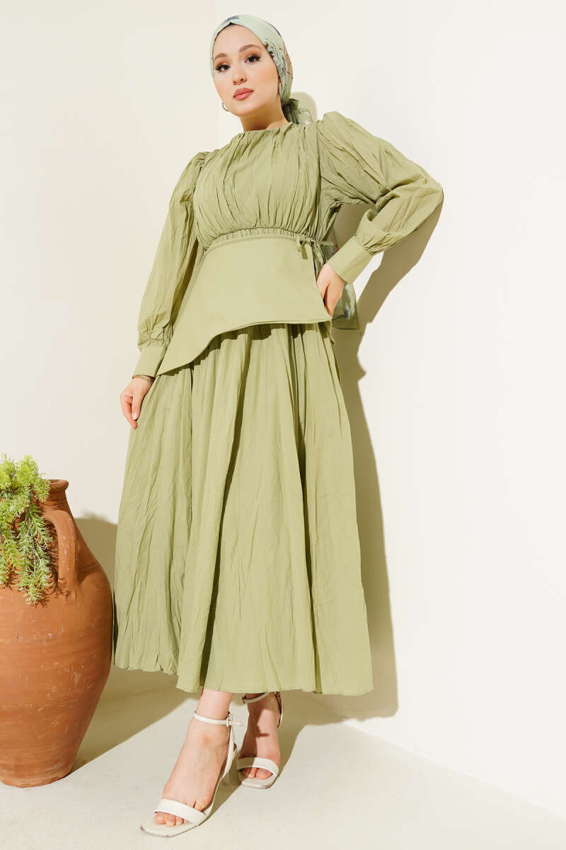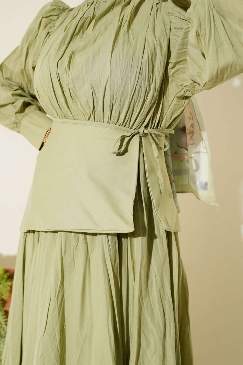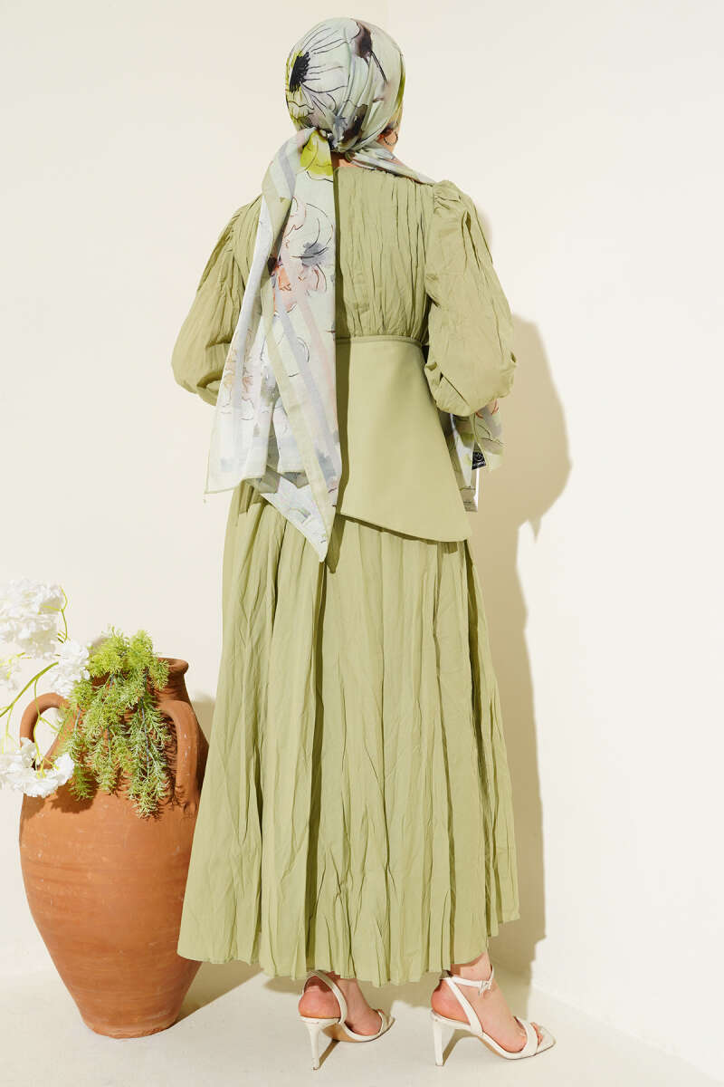 Gül Detaylı Pelerinli Abiye Elbise Haki
