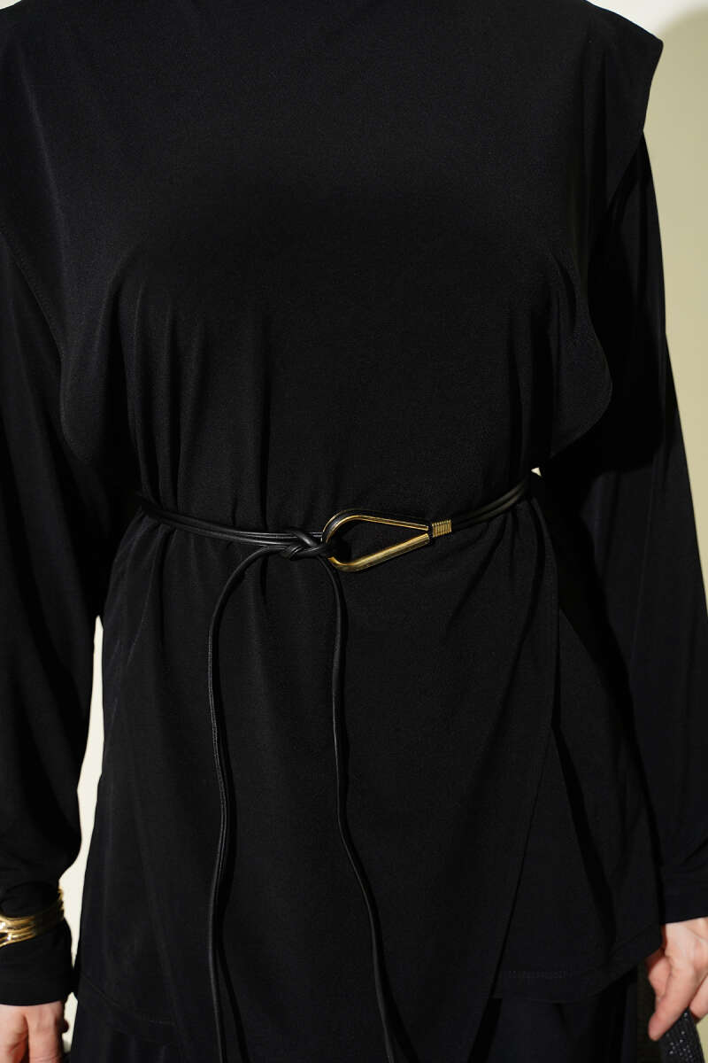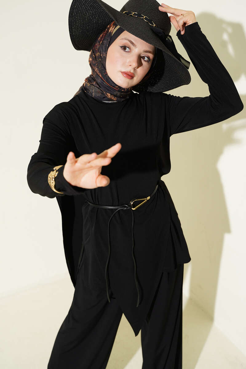 Asimetrik Parçalı Kuşaklı Sandy İkili Takım Siyah