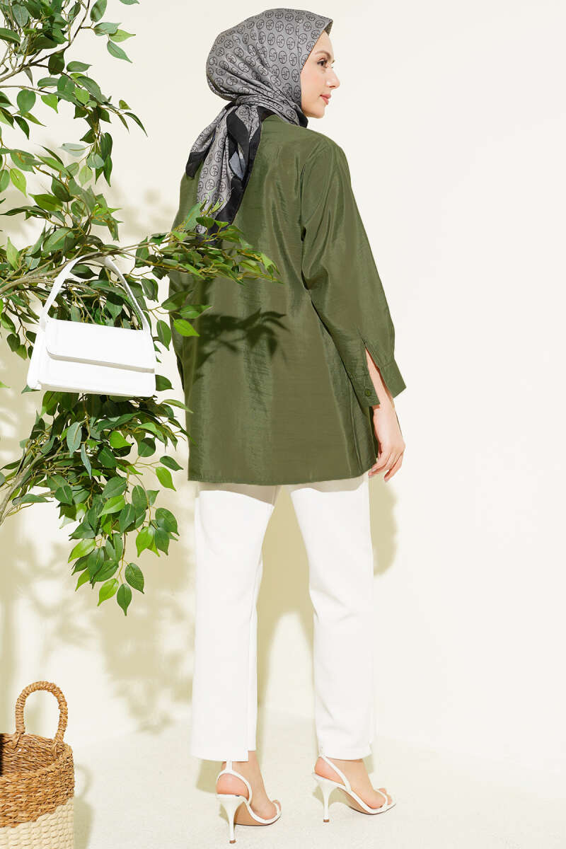 Klasik gömlek formuna modern bir yorum getiren bu Asitmetrik Bağlamalı Gömlek, özel dokusu ve iddialı kesimiyle stilinizi bir adım öne taşıyor. Hem günlük şıklığınızda hem de akşam davetlerinizde asaletinizle göz doldurmanızı sağlar.