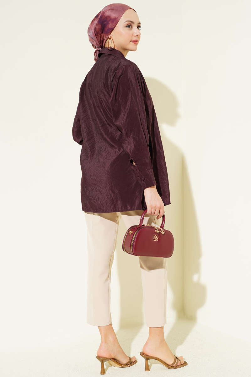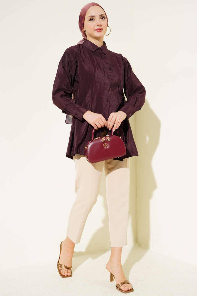 Asitmetrik Bağlamalı Gömlek Mürdüm