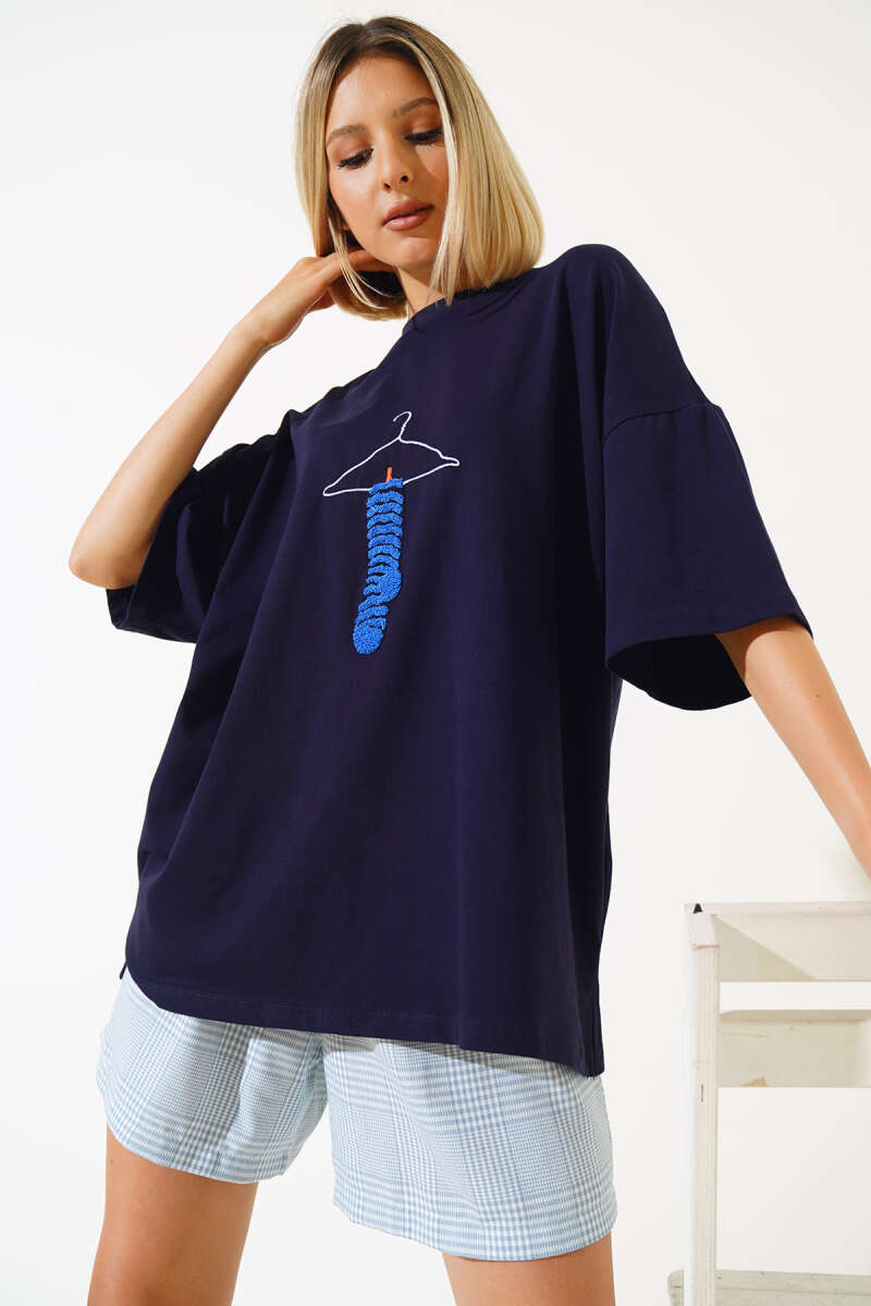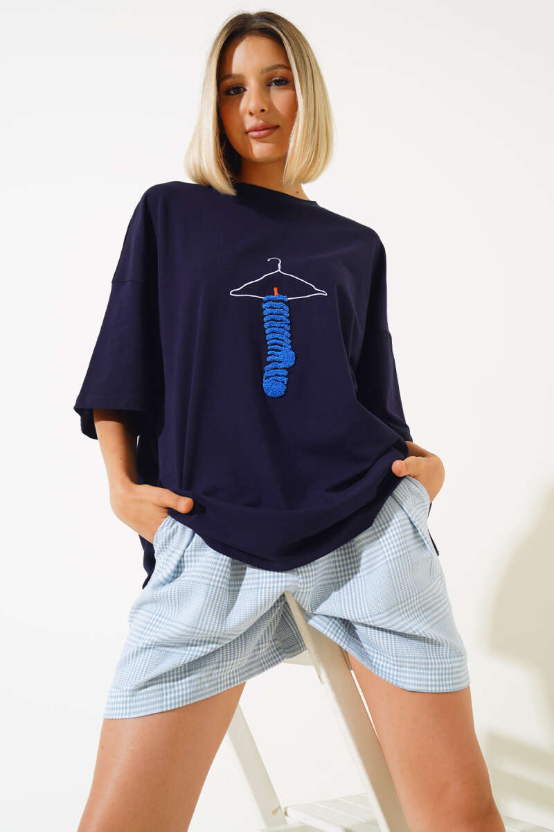 Kemer Tokalı Mom Kot Pantolon Lacivert