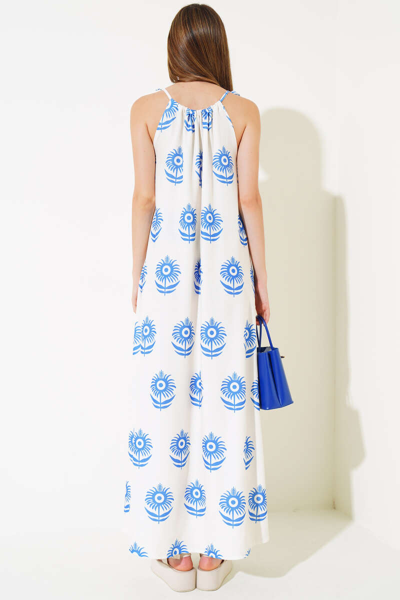 Yarım Yaka Fermuarlı Cepli Kot Elbise Mavi