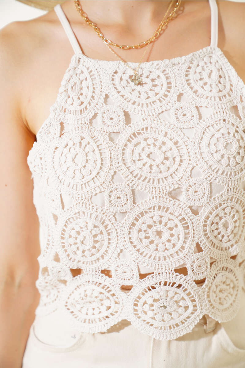 Askılı Güpürlü Crop Bej