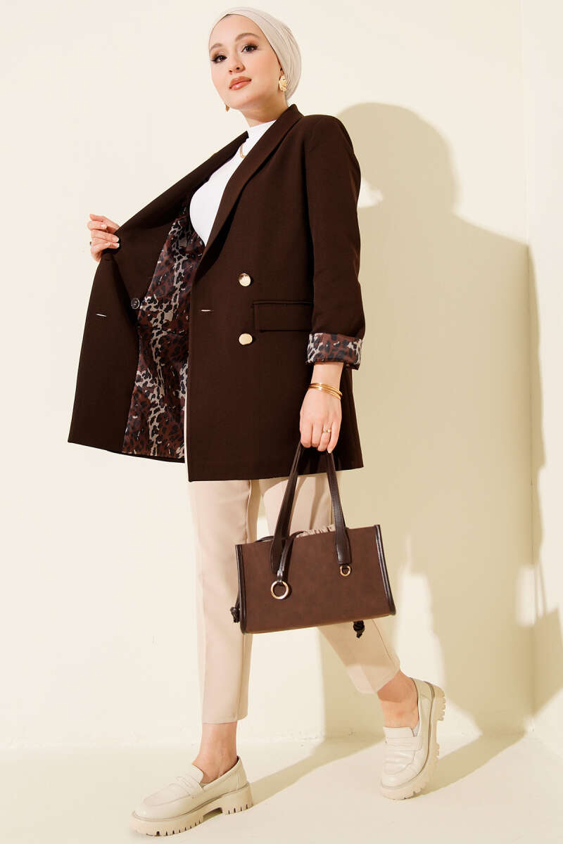 Bel Lastikli Kemerli Dabıl Ceket Kahve