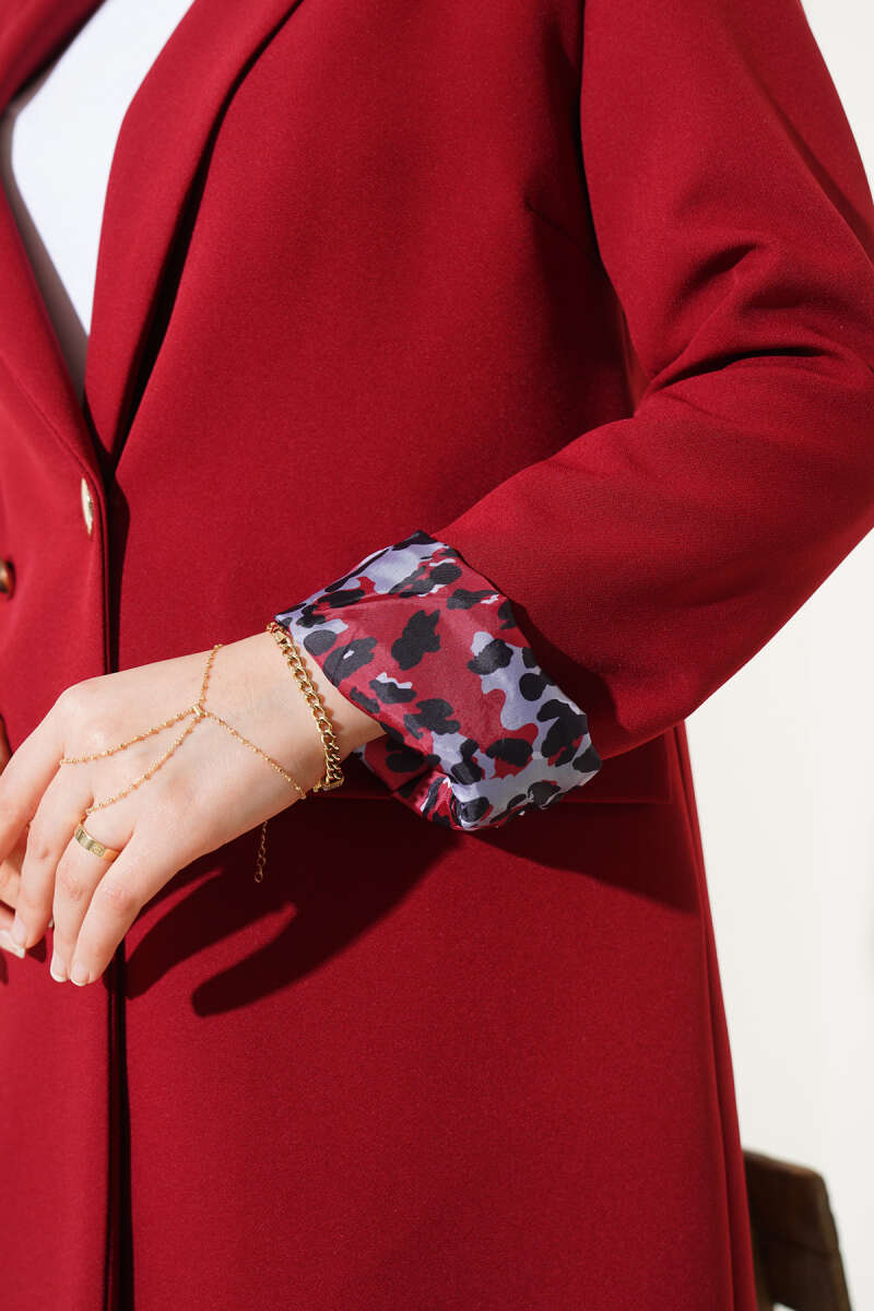 Pelerinli Gold Düğmeli Scuba Ceket Bordo