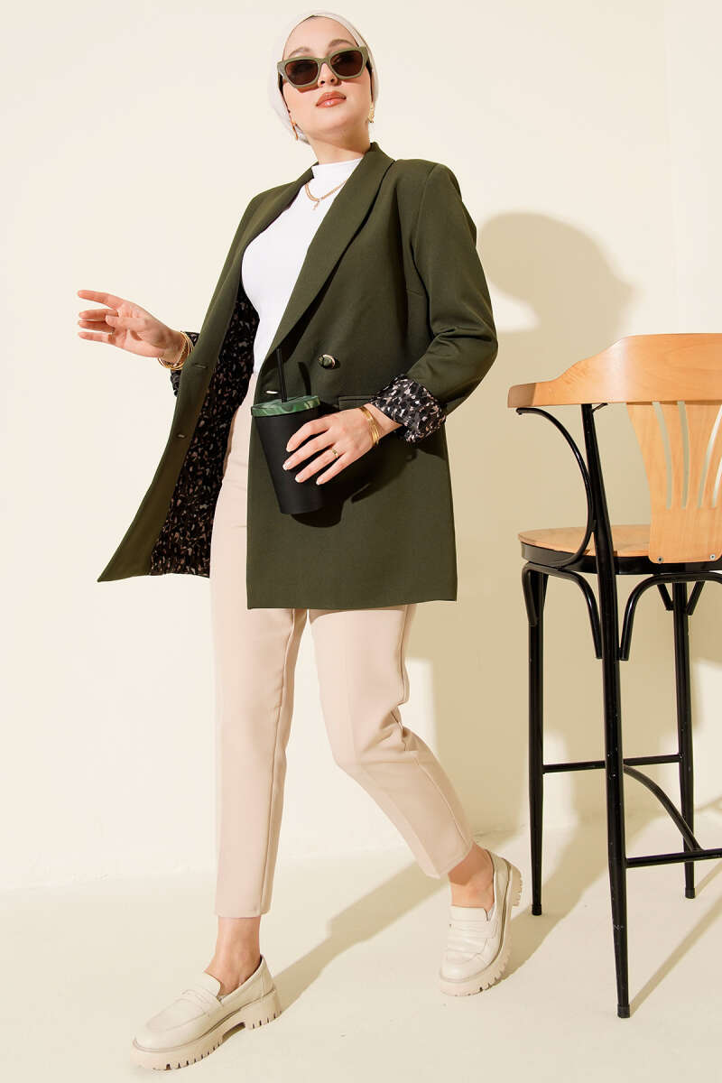 Bel Lastikli Kemerli Dabıl Ceket Bej