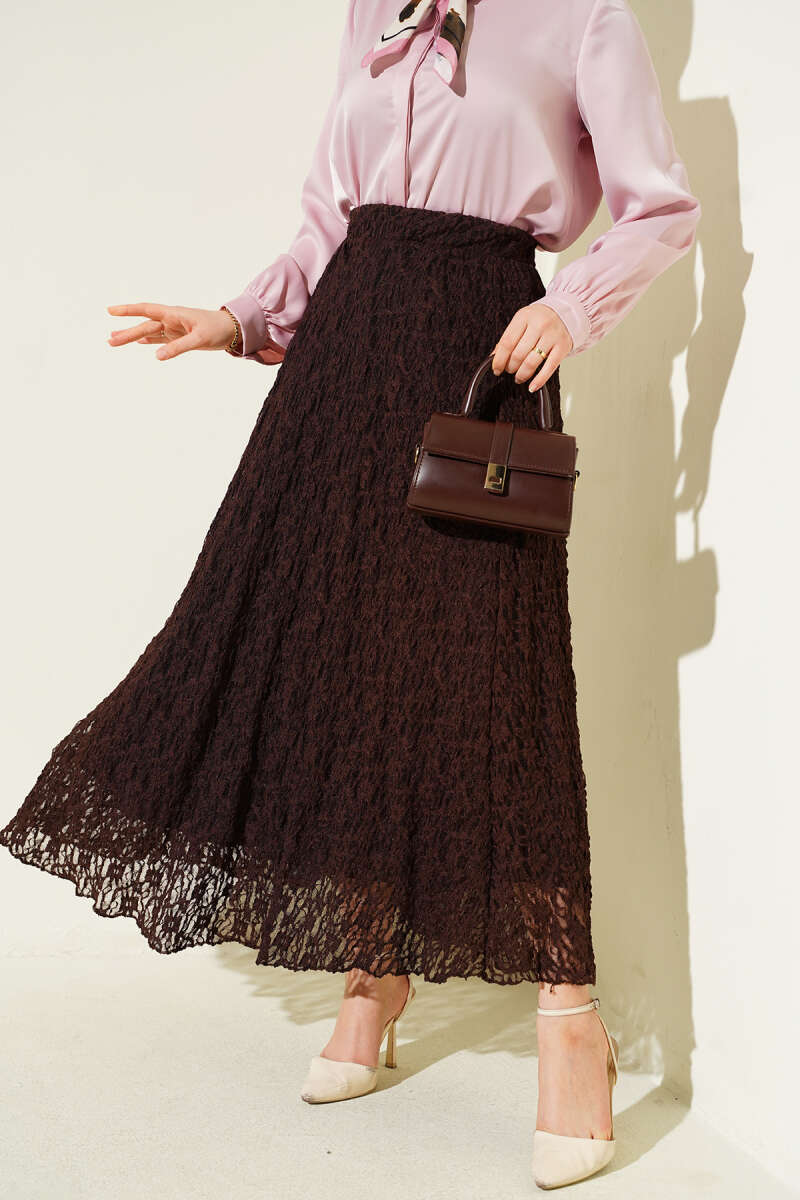 Astarlı Dantelli Etek Kahve