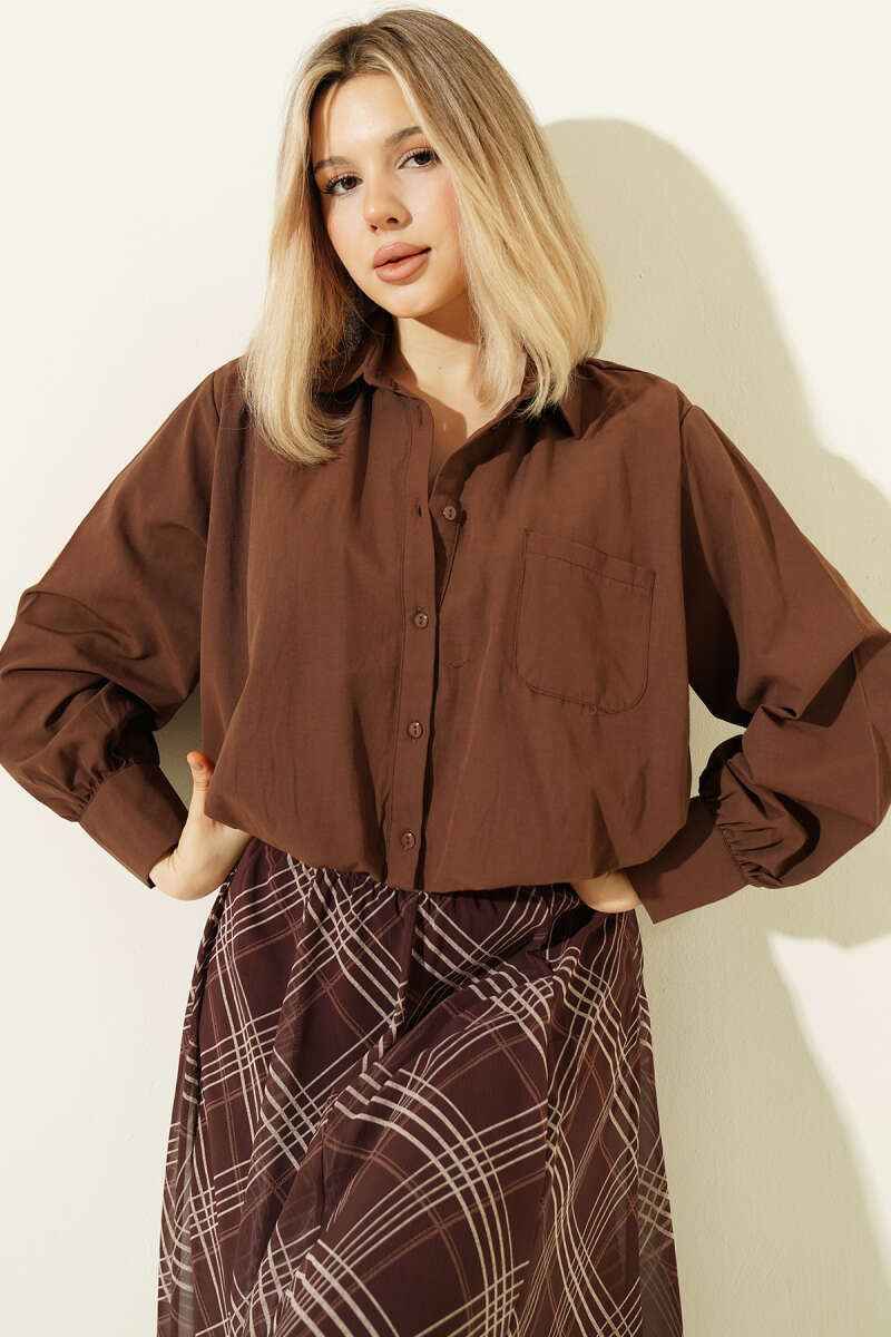 Astarlı Kısa Poplin Gömlek Kahve