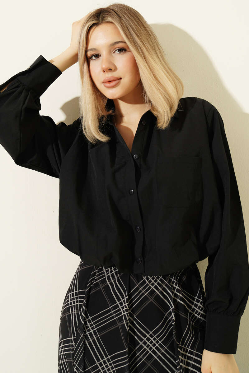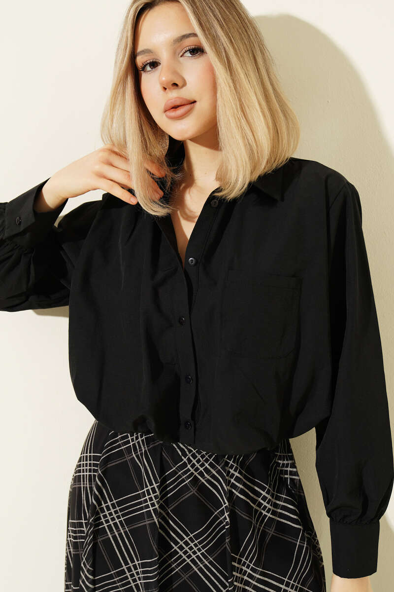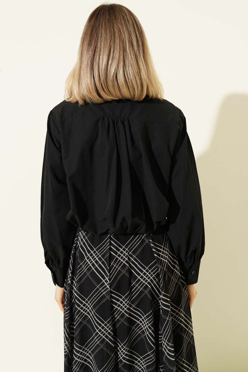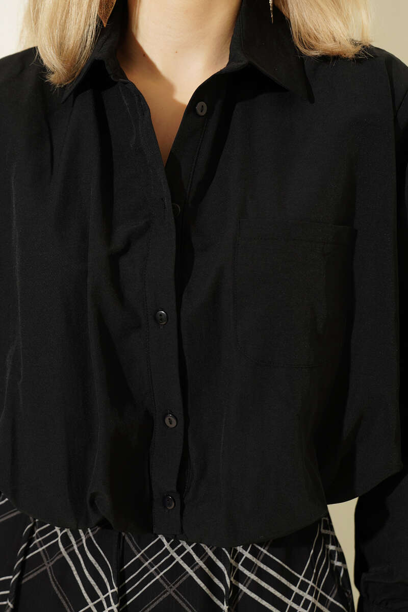 Astarlı Kısa Poplin Gömlek Siyah