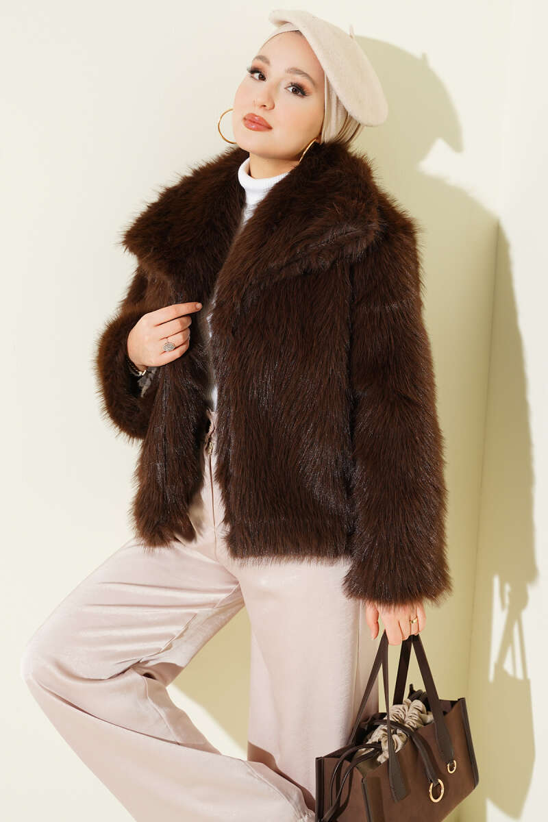 Gold Düğmeli Kuşaklı Süet Ceket Taba