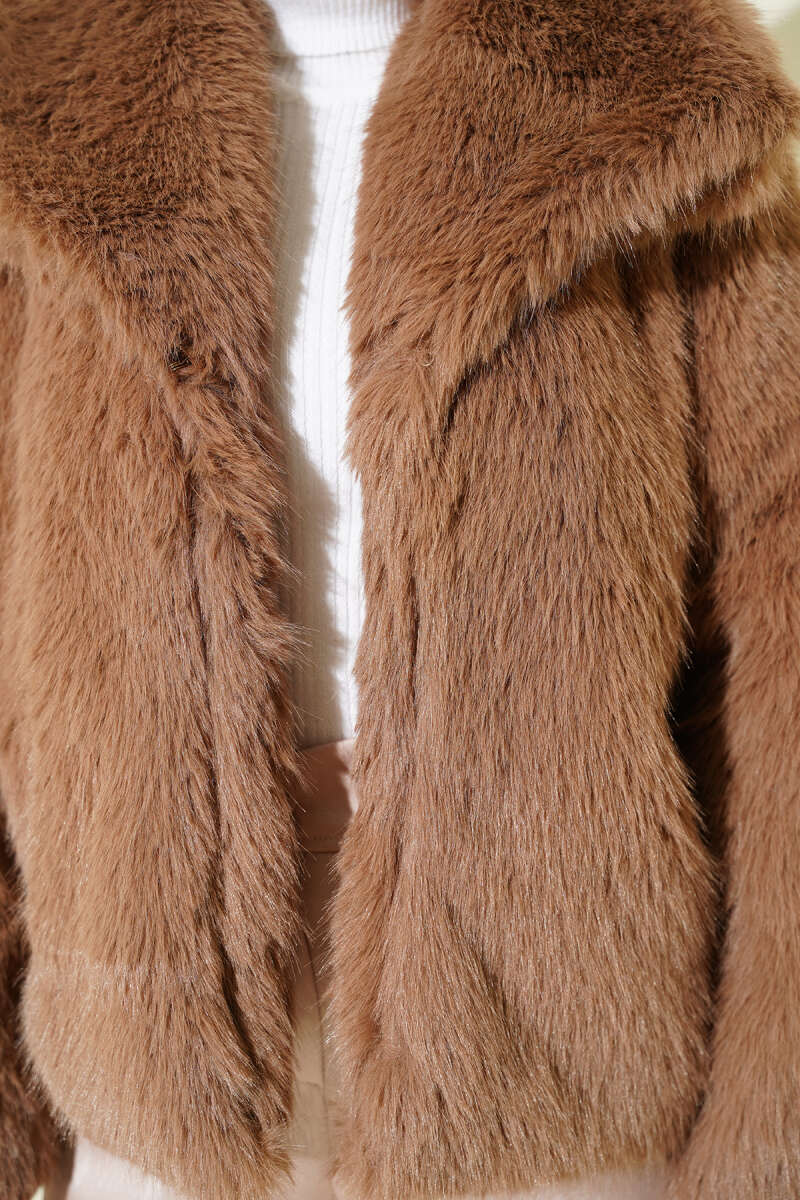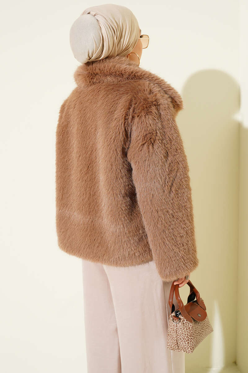 Gold Düğmeli Kuşaklı Süet Ceket Taba