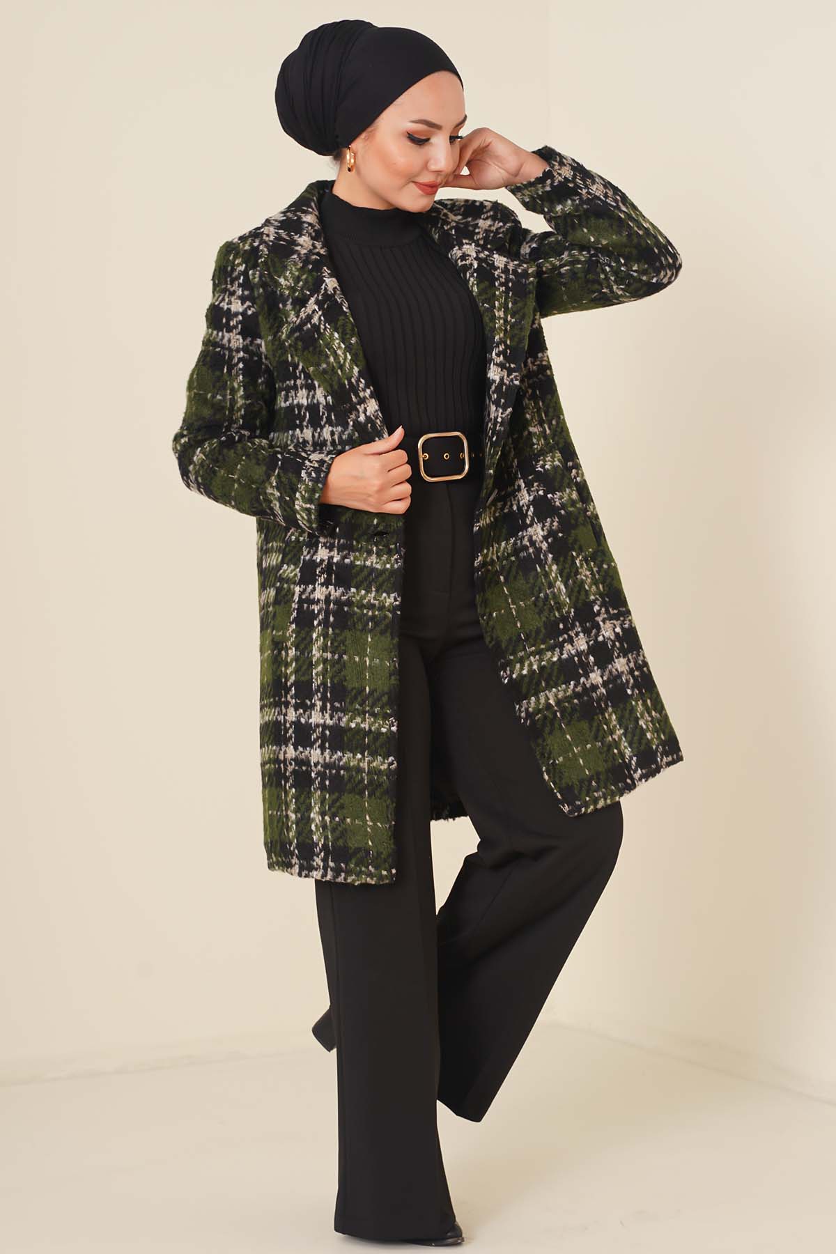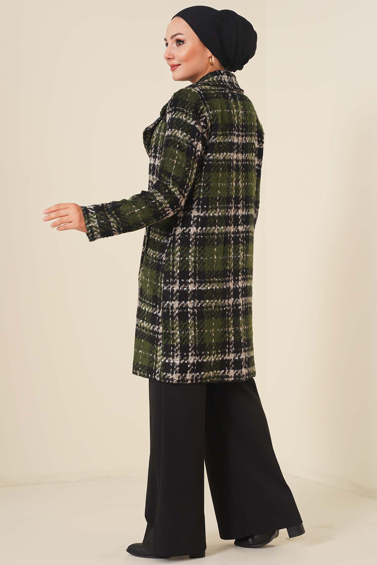 Astarlı Tek Düğmeli Kaban Haki