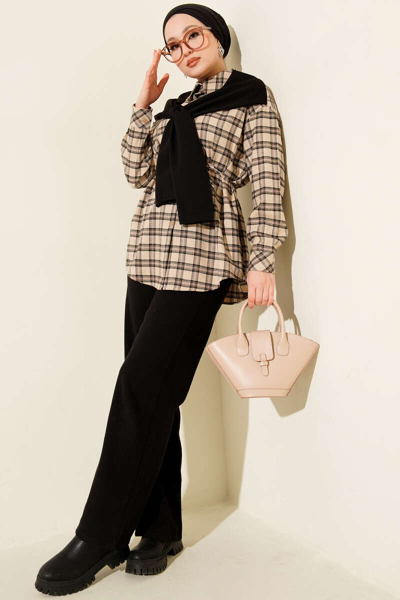 Atkı Detaylı Ekoseli Gömlek Siyah