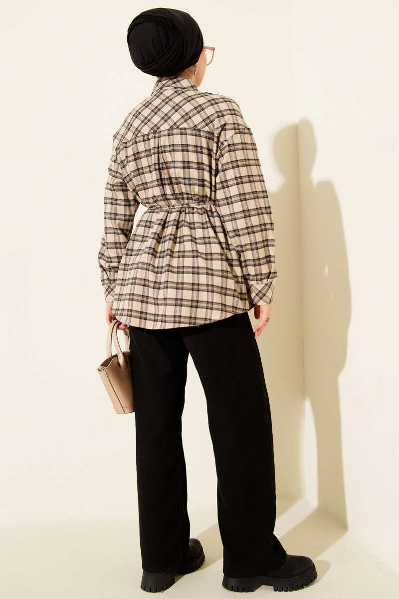 Atkı Detaylı Ekoseli Gömlek Antrasit