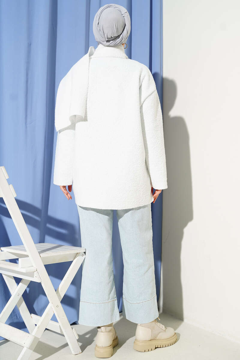 Çoban Dikişli Oversize Keçe Ceket Taş
