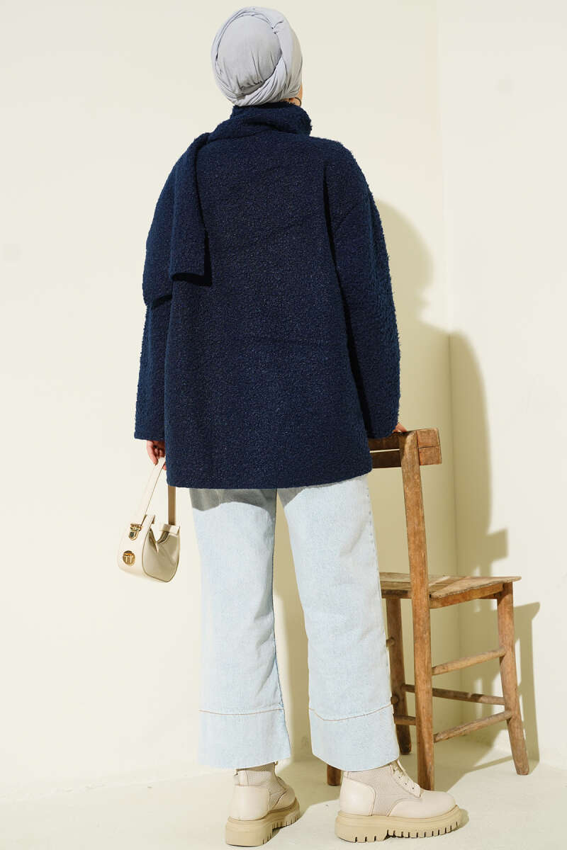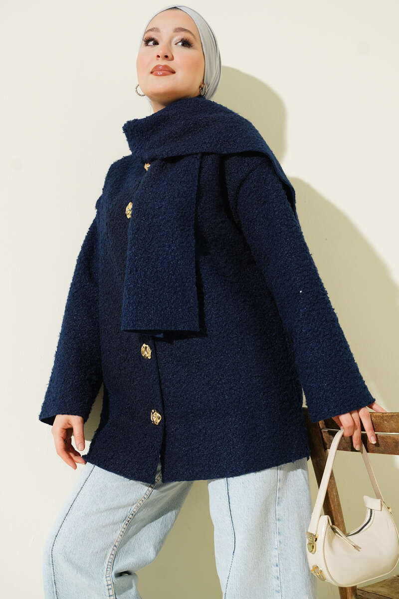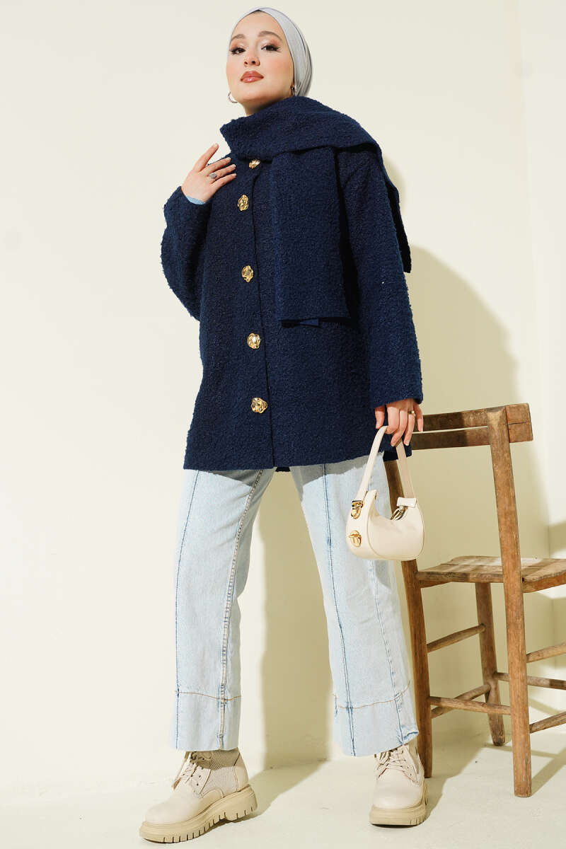 Çıtçıtlı Buklet Cepli Ceket Lacivert
