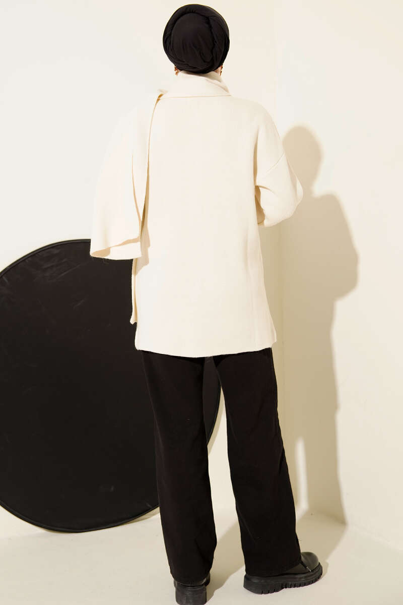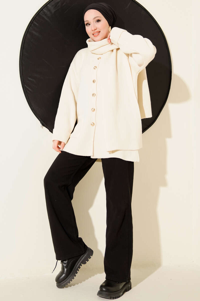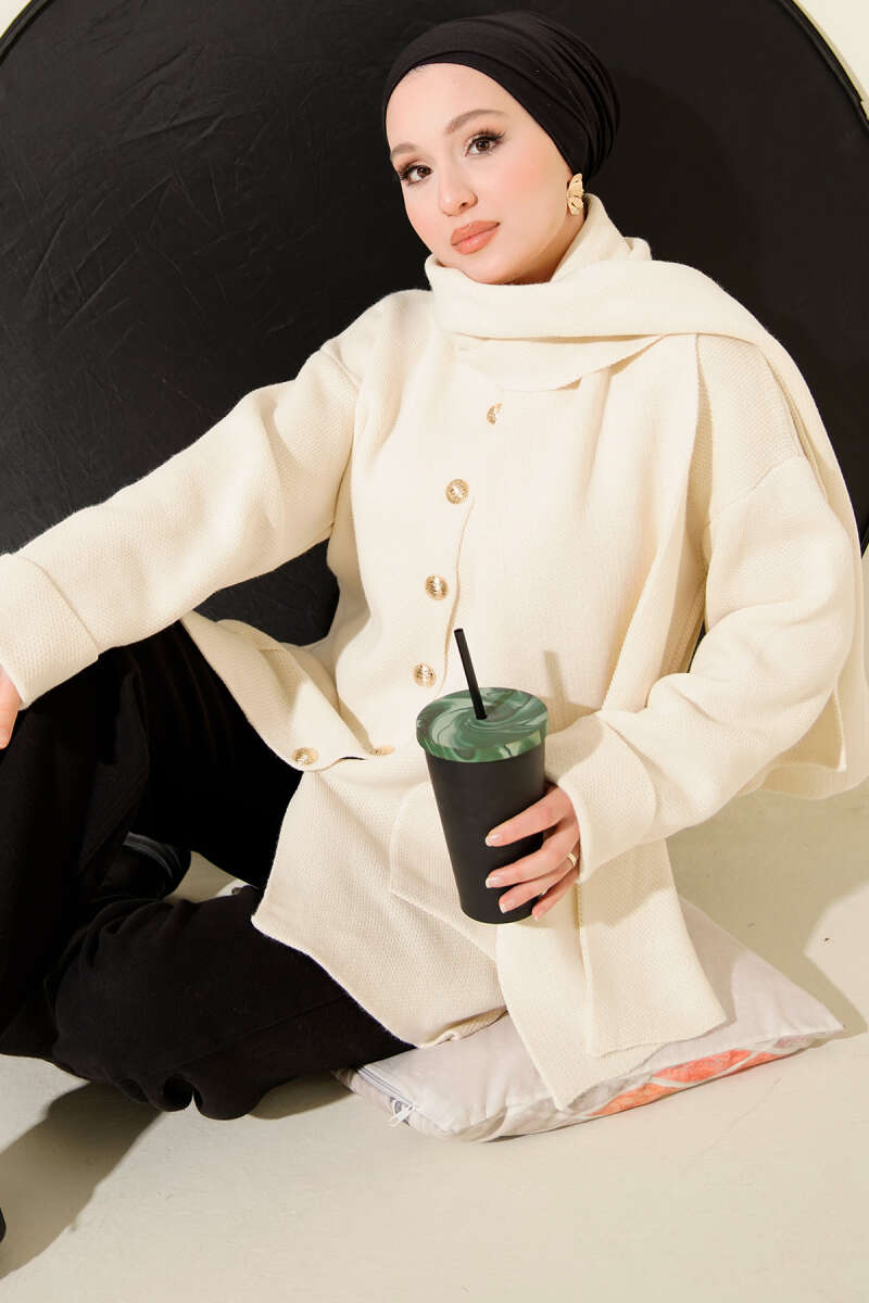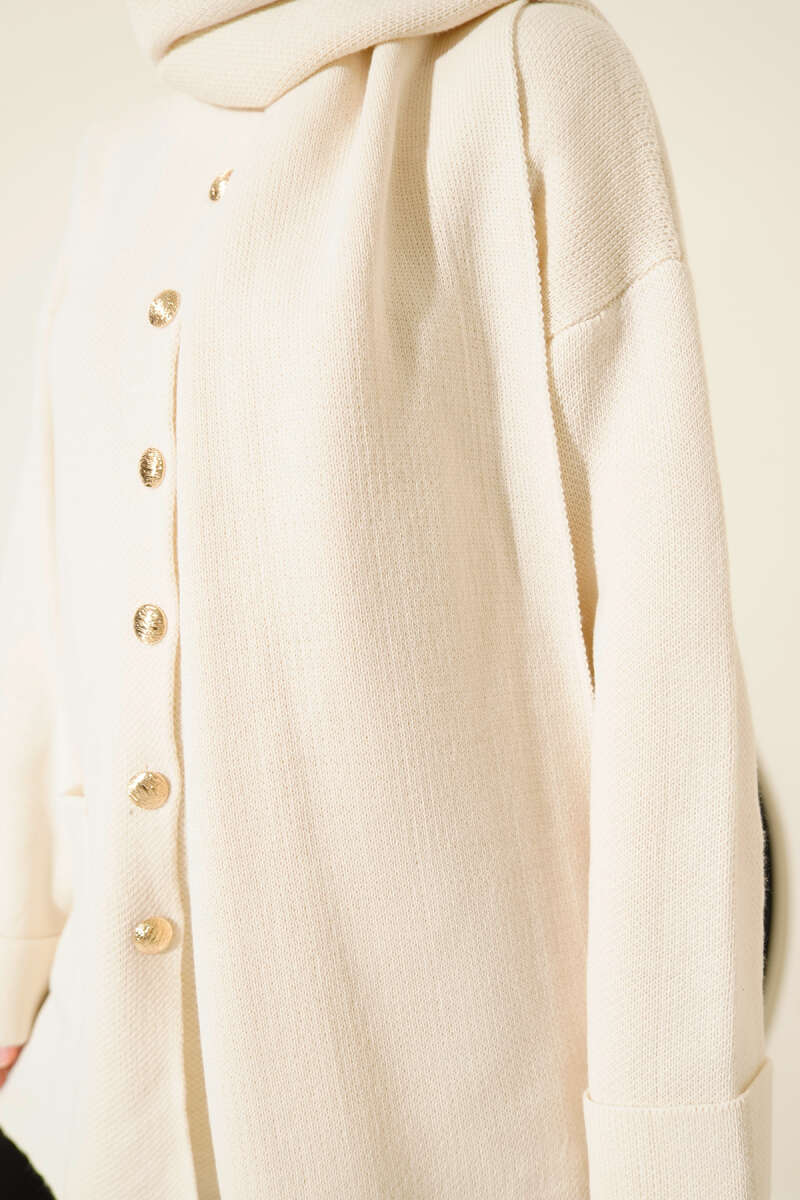 Sepet Örgü Triko Hırka Ekru