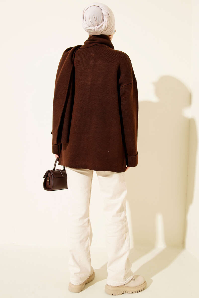 Atkılı Düğmeli Cepli Triko Hırka Vizon