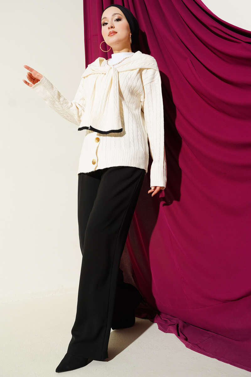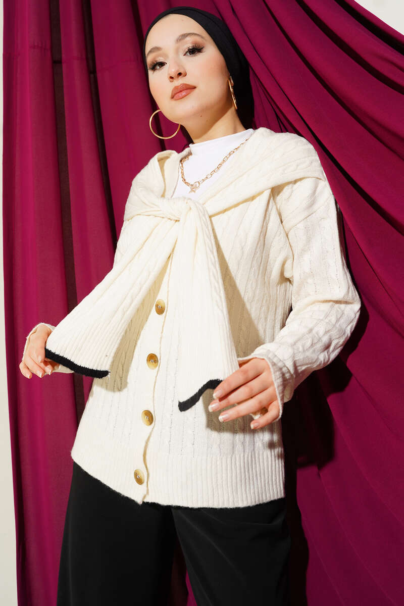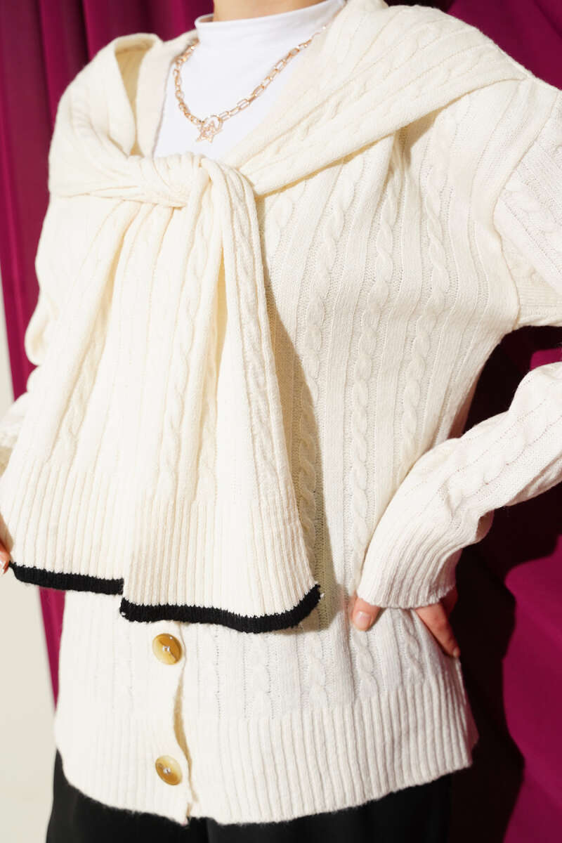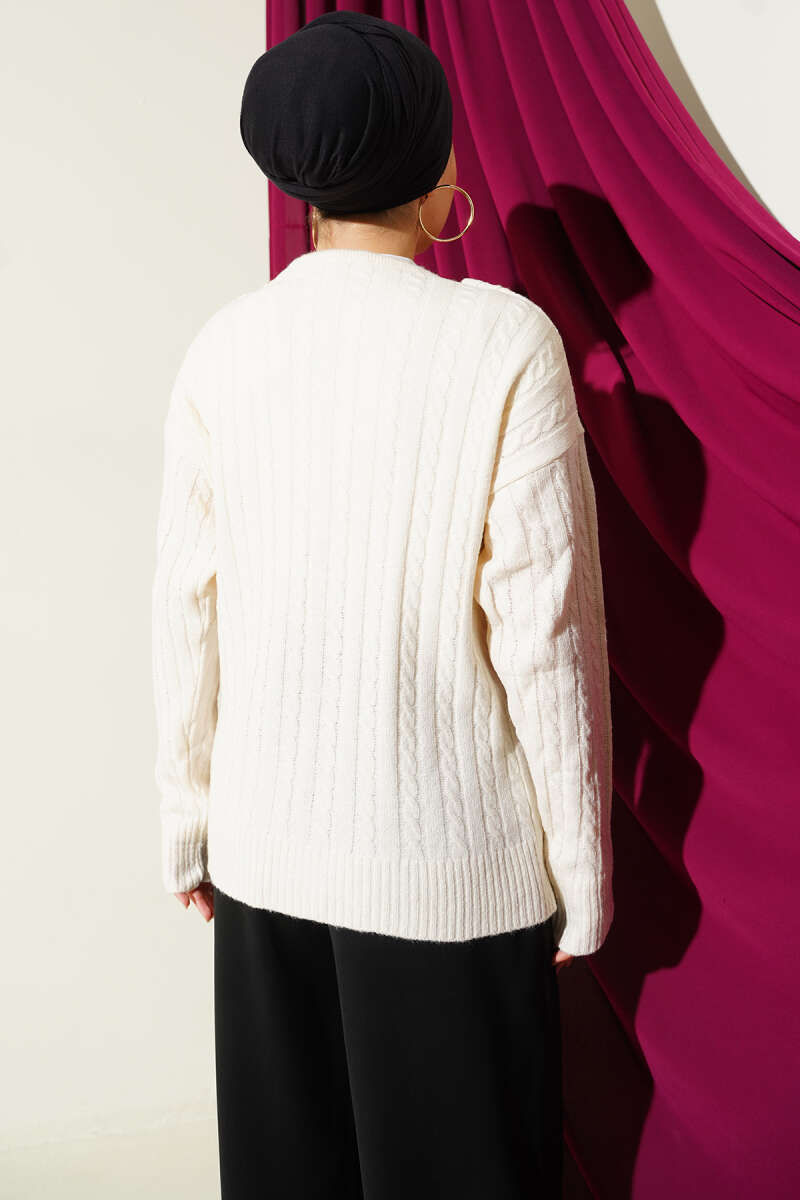 Atkılı Örgülü Kısa Triko Hırka Ekru